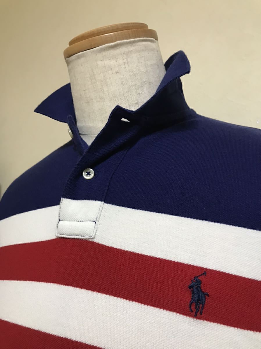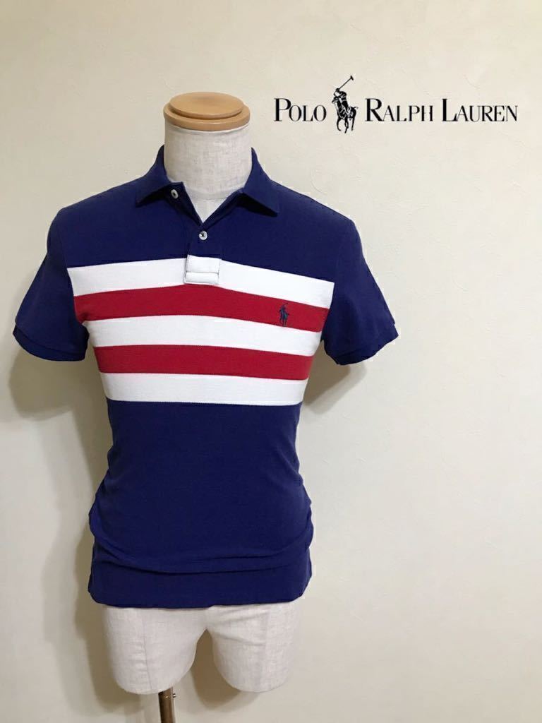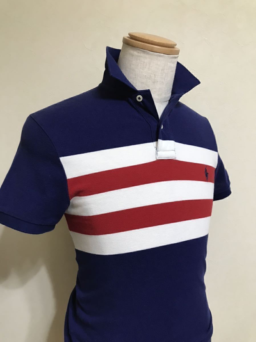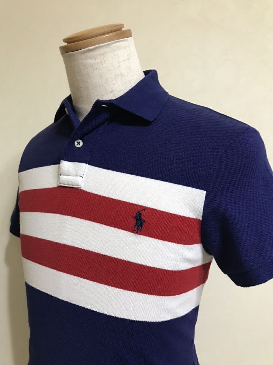 Polo Ralph Lauren ポロ ラルフローレン ボーダー 鹿の子 ポロシャツ トップス サイズXS 165/88A ネイビー 白 赤 カスタムフィット 半袖