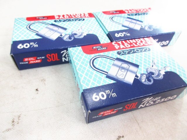 N567■ソール / 南京錠 ステンレス / 60mm // 計3個 // SOL #2500 ロック 鍵 / まとめ売り / 未使用