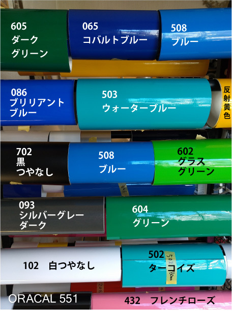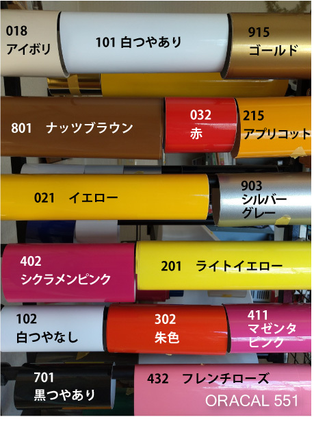 | HPの色見本と同じものです。商品画像 にある色も選択可能です。 当工房では屋外5年耐候以上のカッティングフィルムを使用しています。 |
