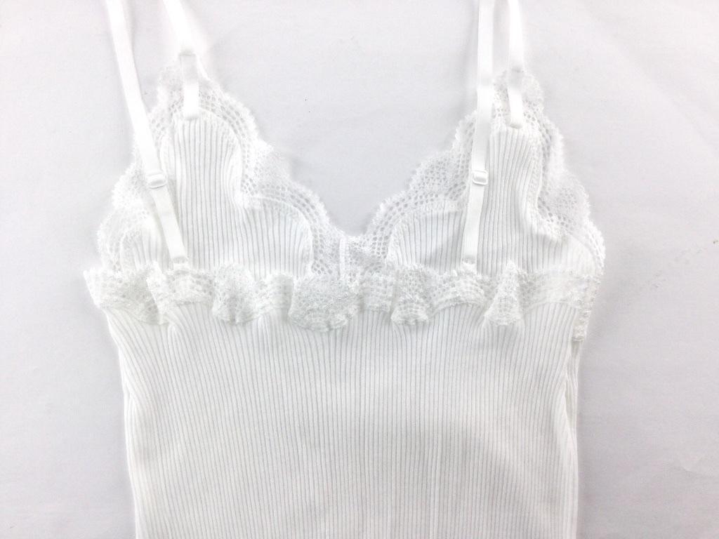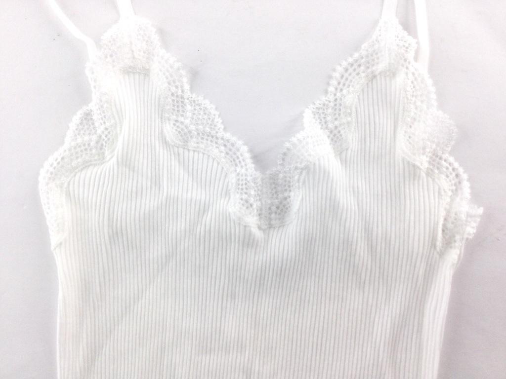 綿100%のリブ素材でやさしい肌ざわりのキャミソール。