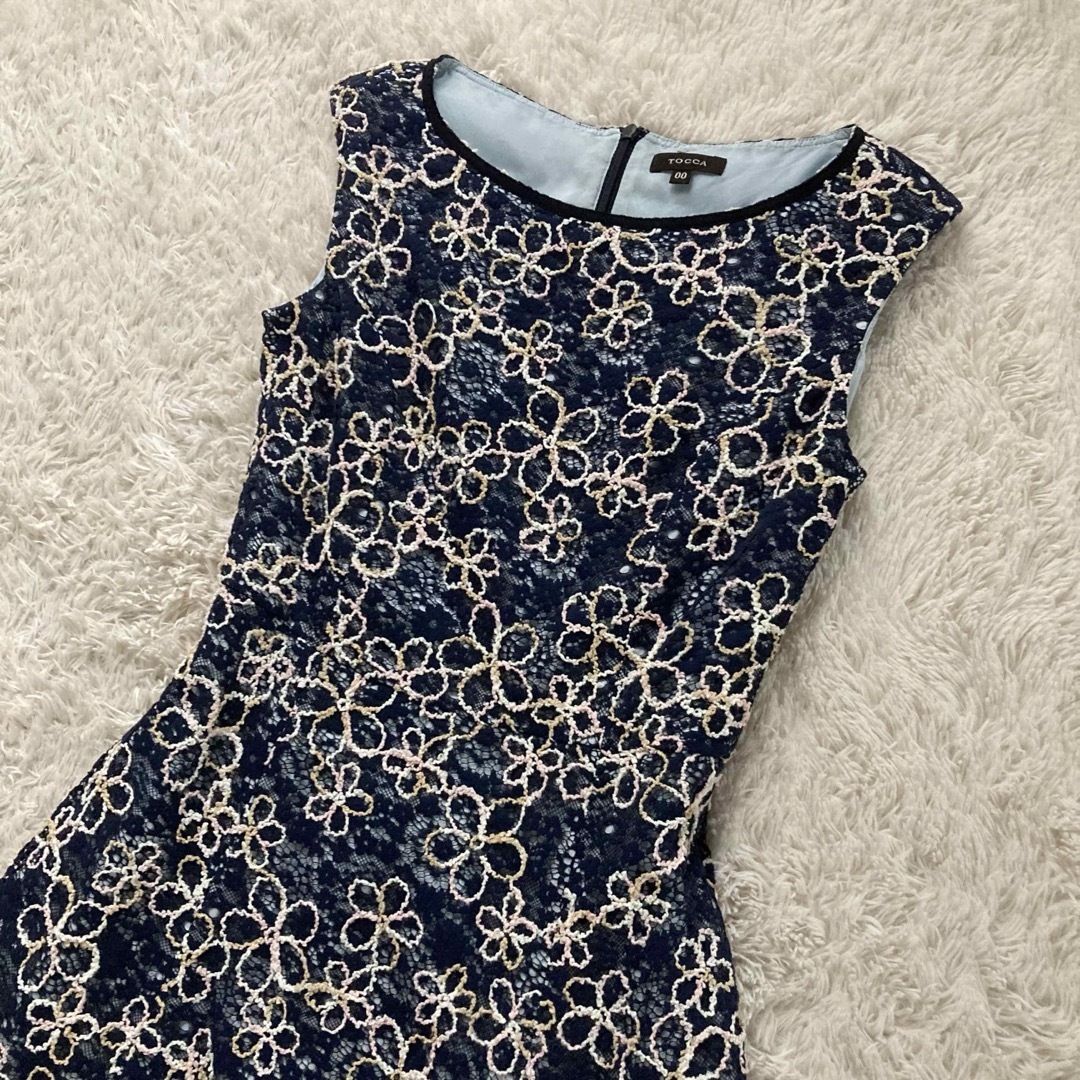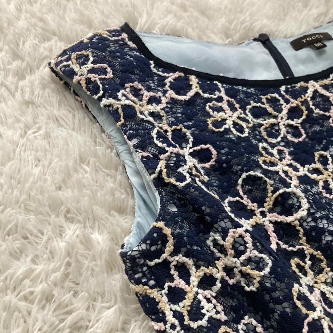TOCCA トッカ ノースリーブフレアワンピース フォーマルワンピース Aライン フィット&フレア 総レース 豪華 フラワー刺繍 日本製