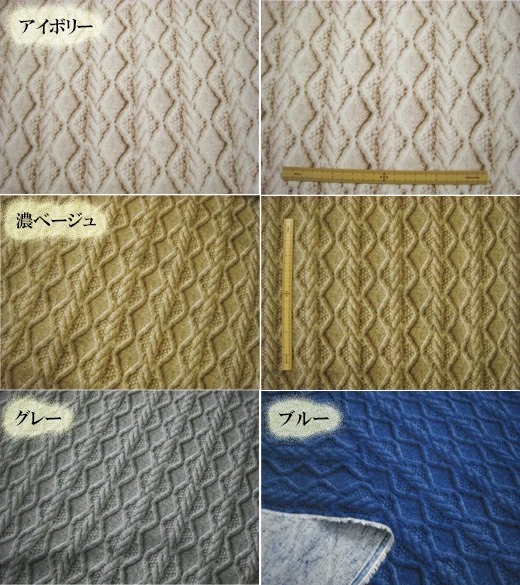 販売色濃ブルーのみ 長さ1m Wガーゼ 起毛 アランニットプリント ( ダブルガーゼ コットン 生地 リアルプリント )
