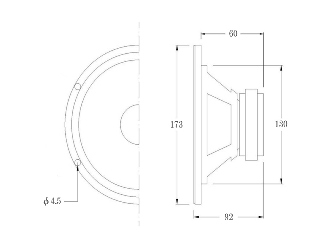 ・再生音域:35Hz~21KHz ・インピーダンス:4Ω ・許容入力:65W (最大195W) |