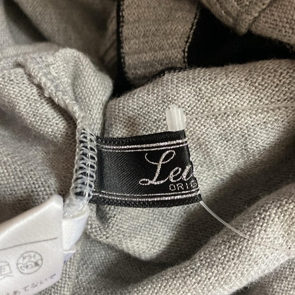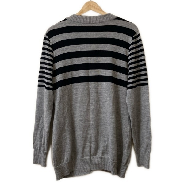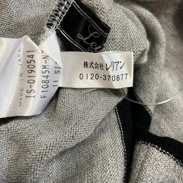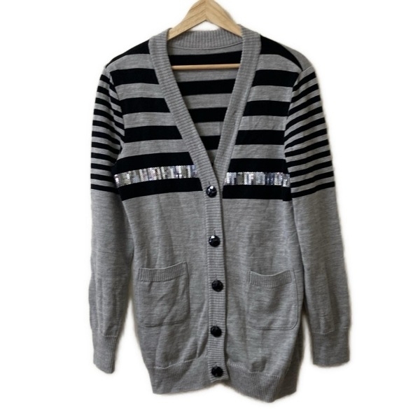 レリアン Leilian カーディガン サイズ11 M ライトグレー×黒 レディース 長袖/ロング丈/ボーダー/スパンコール トップス