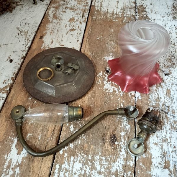 | 1950年代頃 | 【コンディションランク】 1+ ※コンディションランク詳細はコンディションランク表をご覧ください。 コードが取り外されておりますのでインテリアや修理、部品取り前提でご検討ください。電球は付属しますが寿命などは不明です。画像の様にアーム管部に凹みが数か所みられますがコードが通らないなどはありません。古いお品ですので傷、擦れ、汚れ、錆等みられますがシェードの割れや欠け等なく全体のコンディションは概ね良好で、 まだまだ十分利用価値のあるお品かと思います。感覚には個人差御座いますので、念のため、気になる方、神経質な方はご購入をお控えくださいませ。あくまで70~80年ほど前のヴィンテージ品ということをご理解の上、ご購入お願い致します。 |