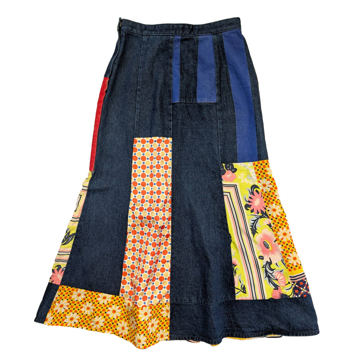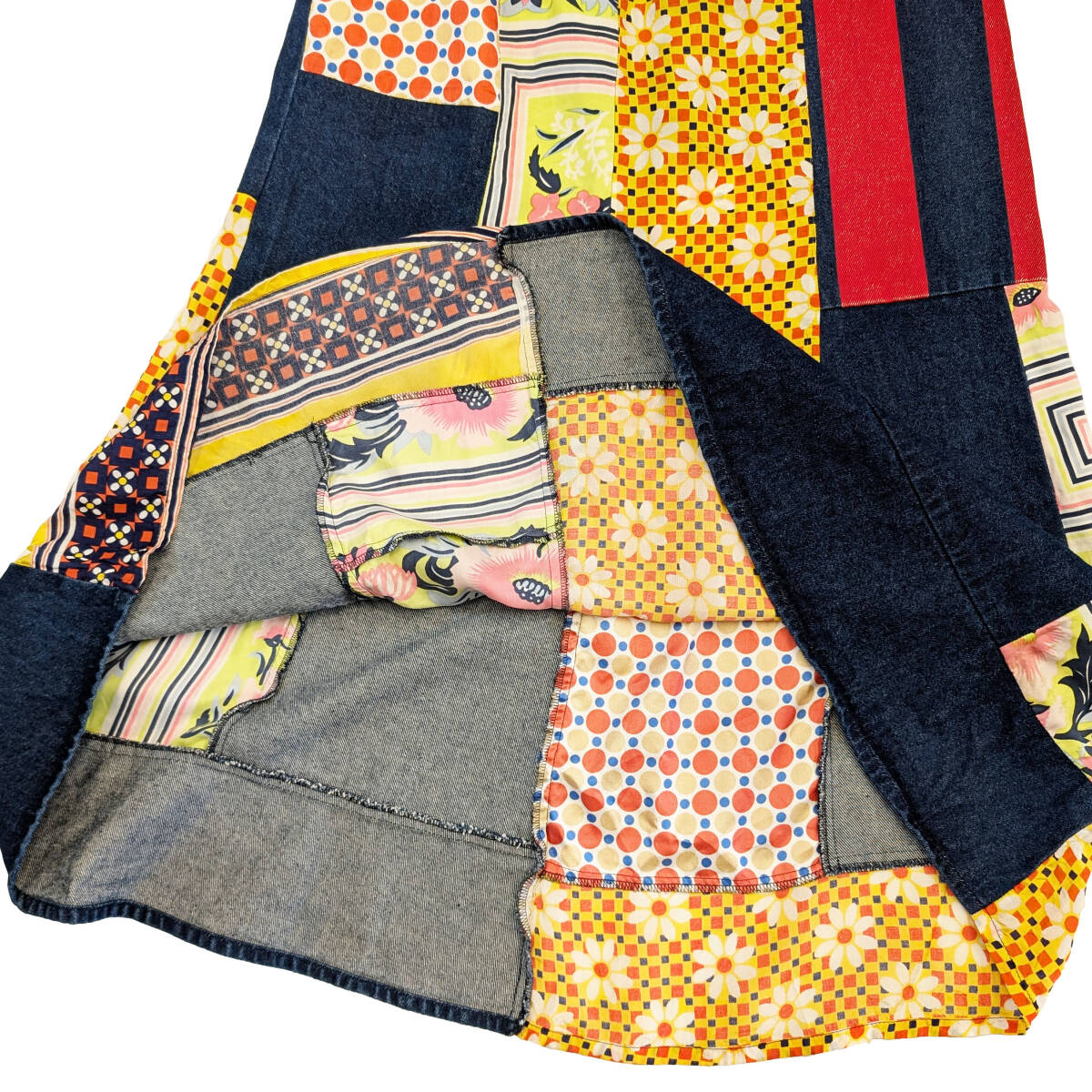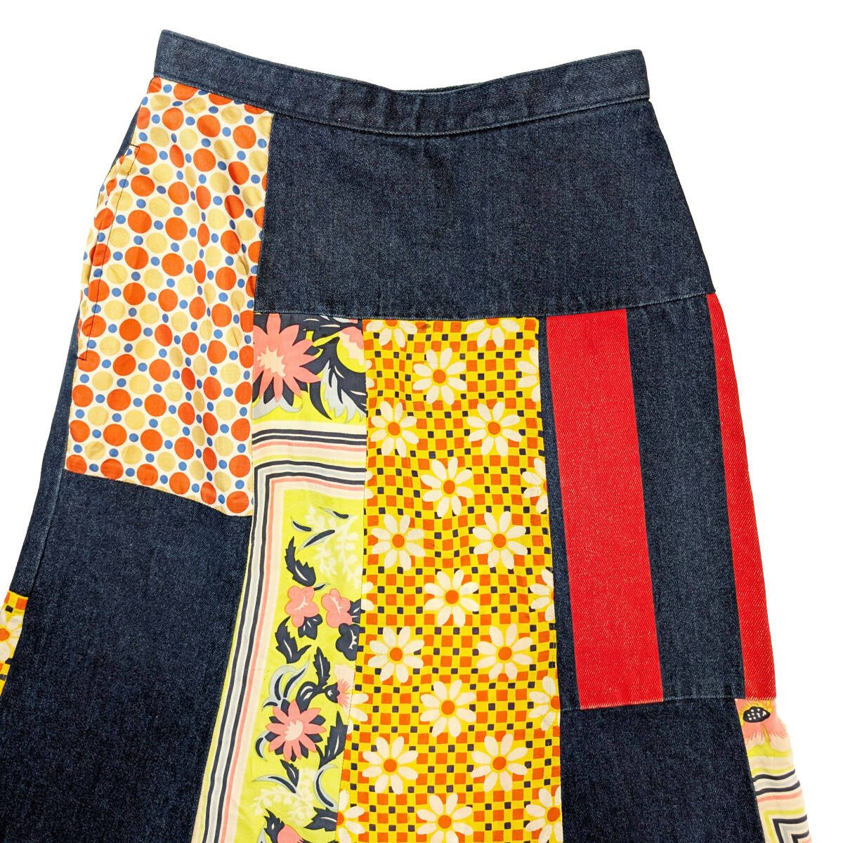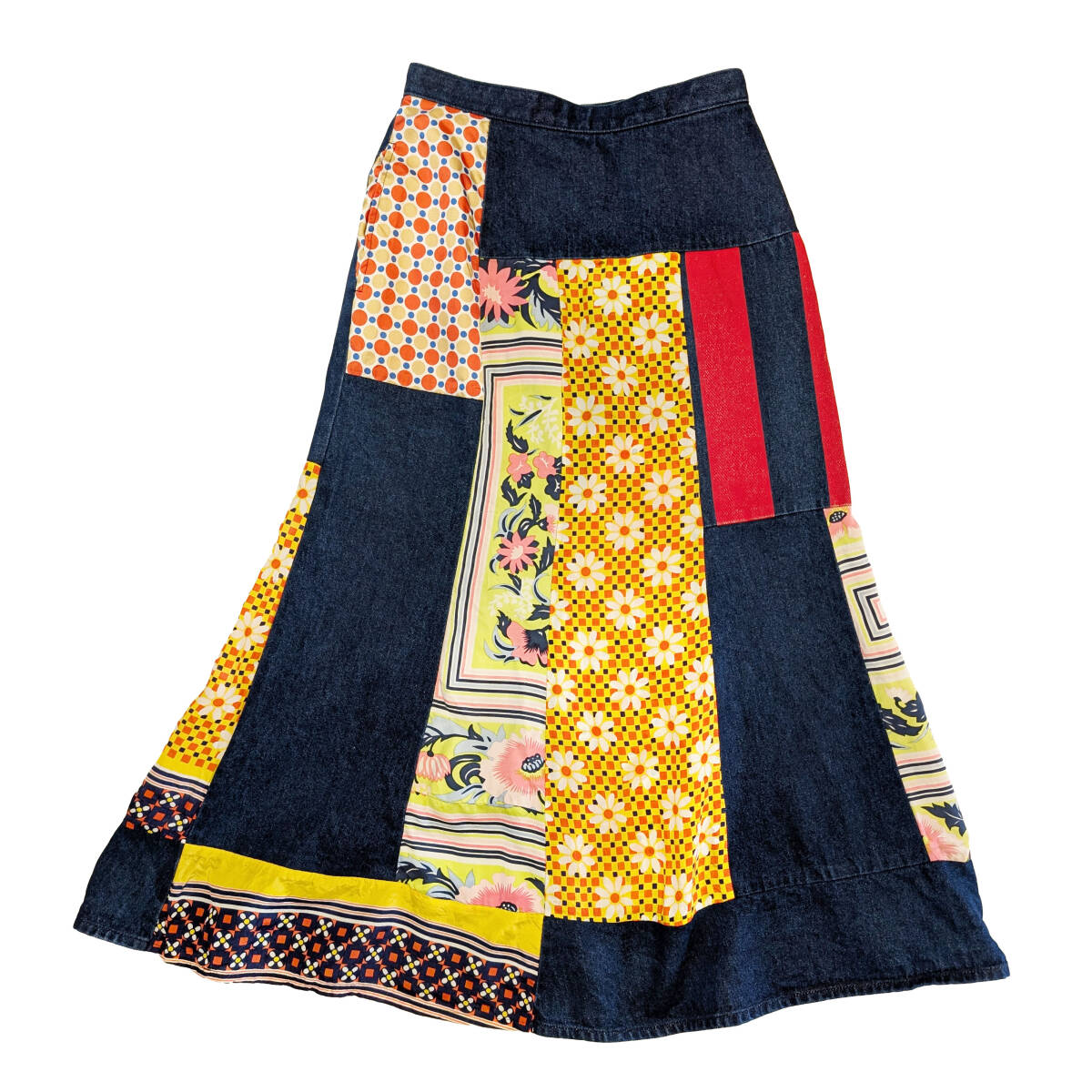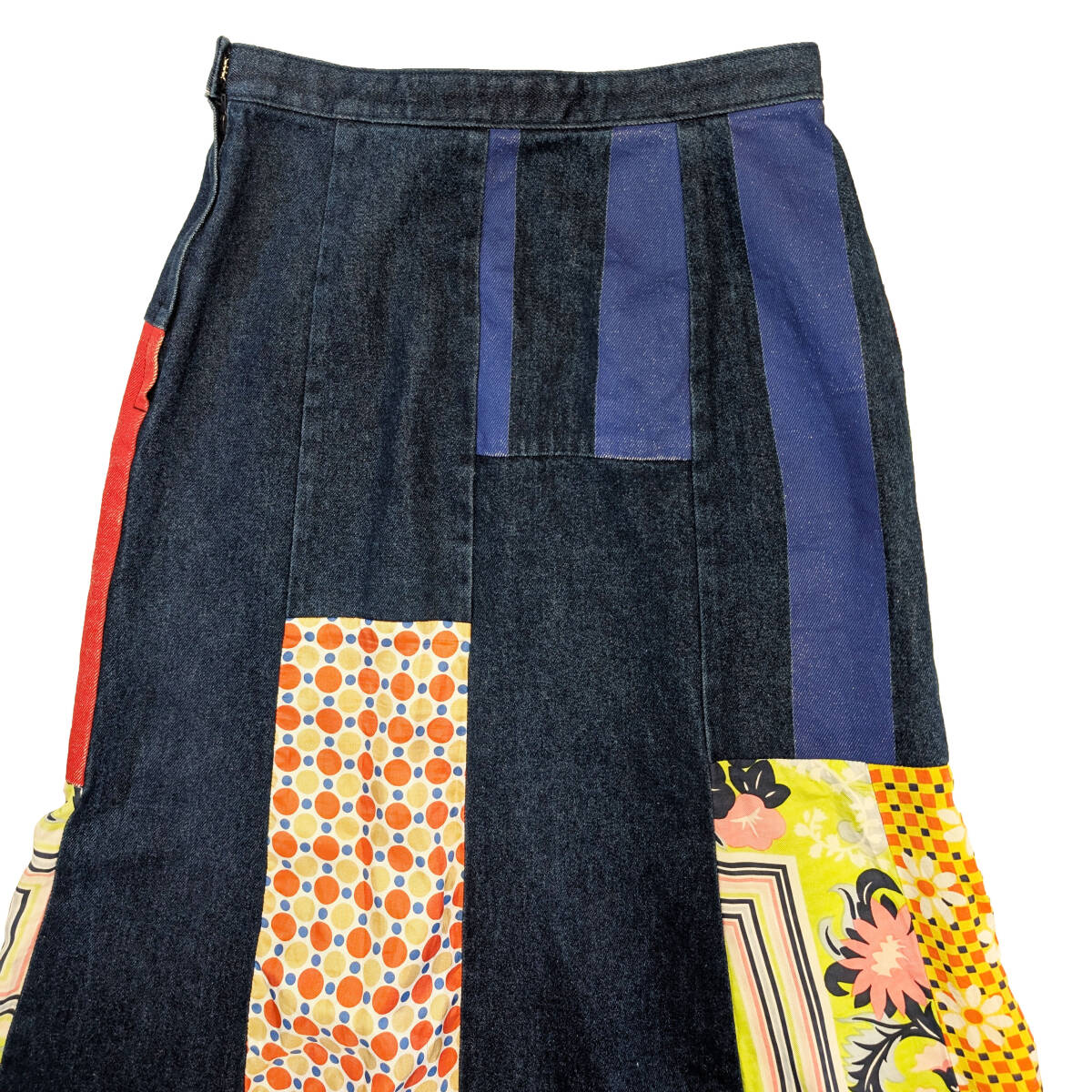 2017年 tricot COMME des GARCONS トリコ ギャルソン デニム 切り替えスカート ロングスカート パッチワーク スカーフ【L】
