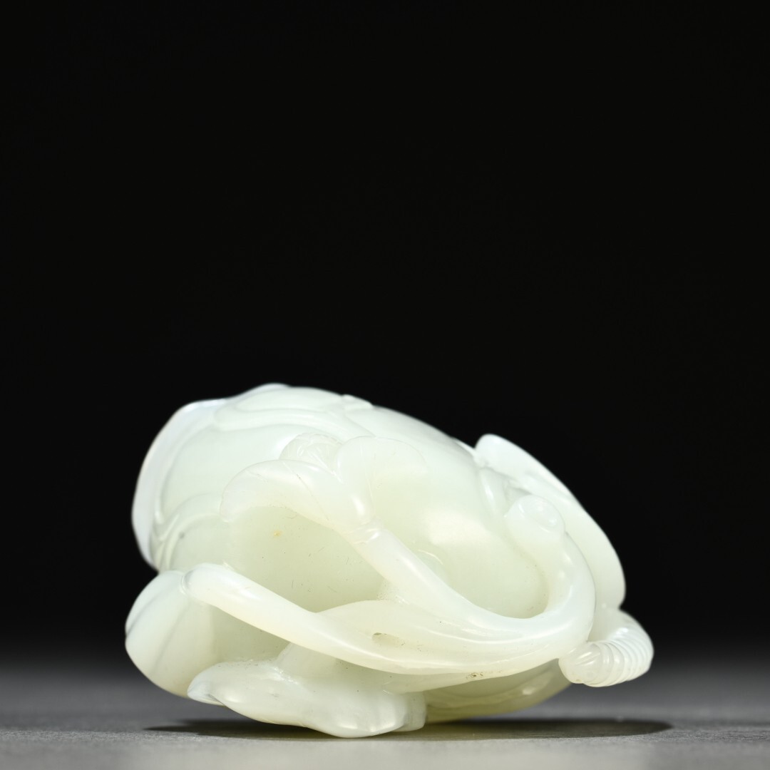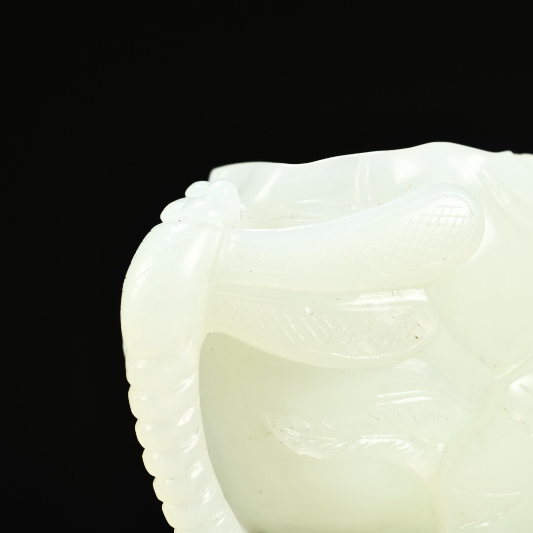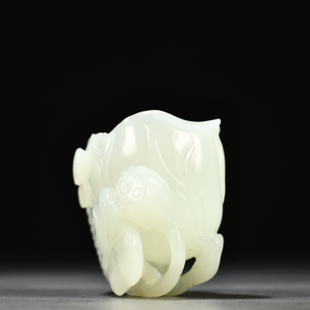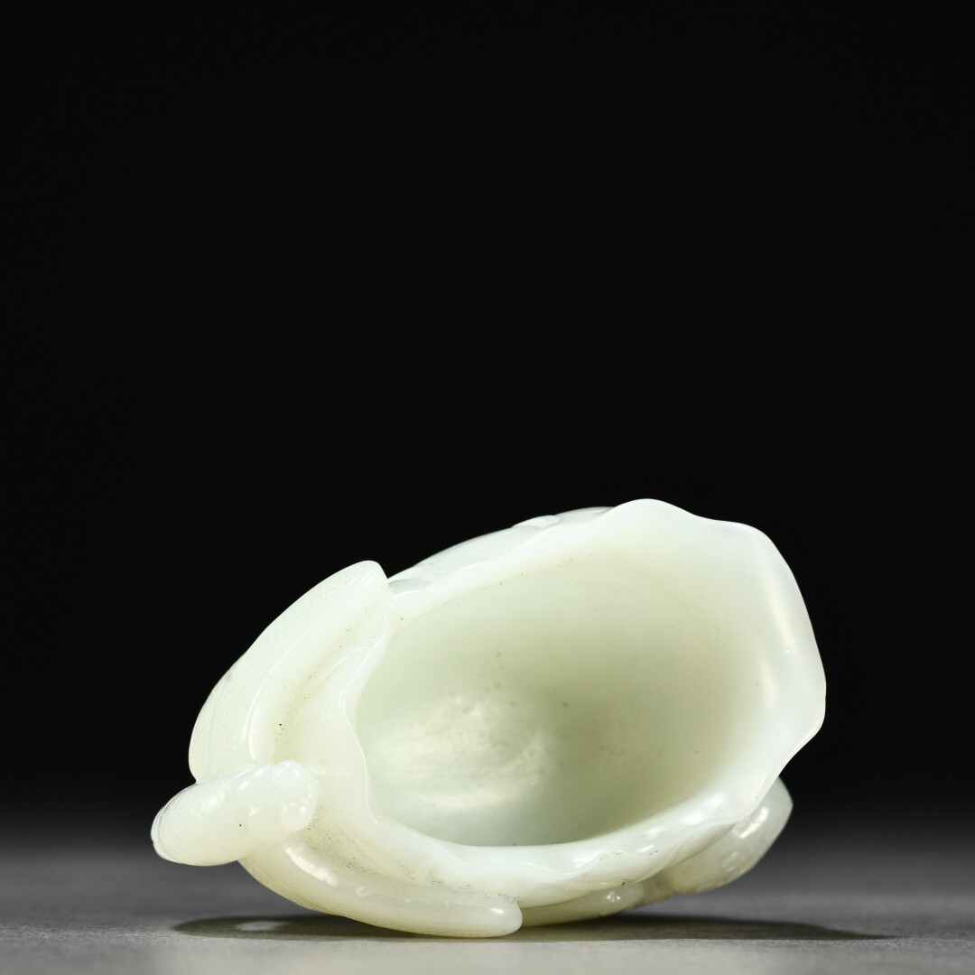 【瓏】和田玉 白玉彫 一品清廉 筆洗 清時代 極細工 手彫り 置物擺件 中国古賞物 古美術 蔵出