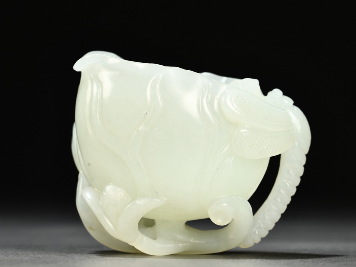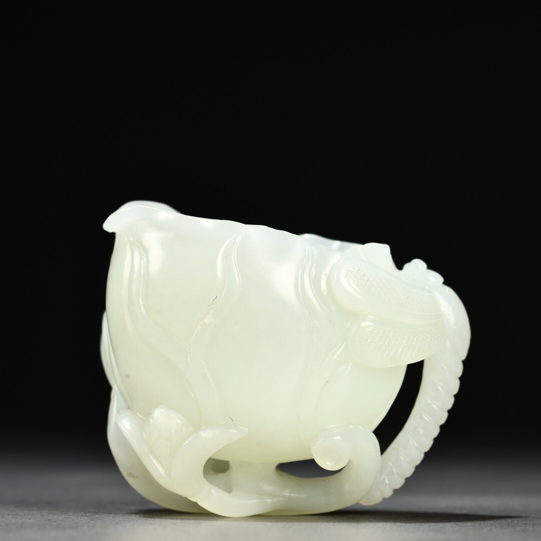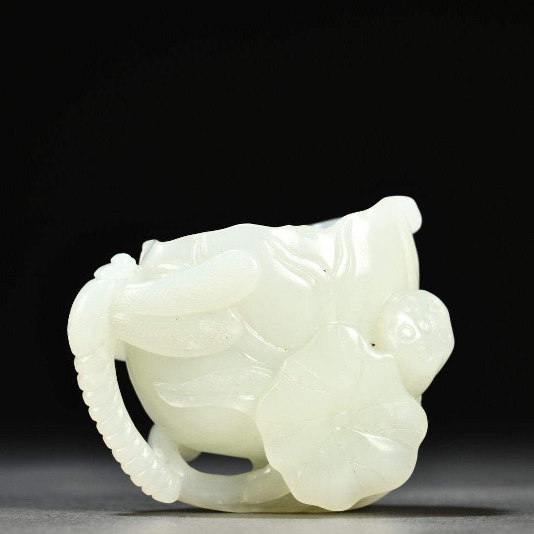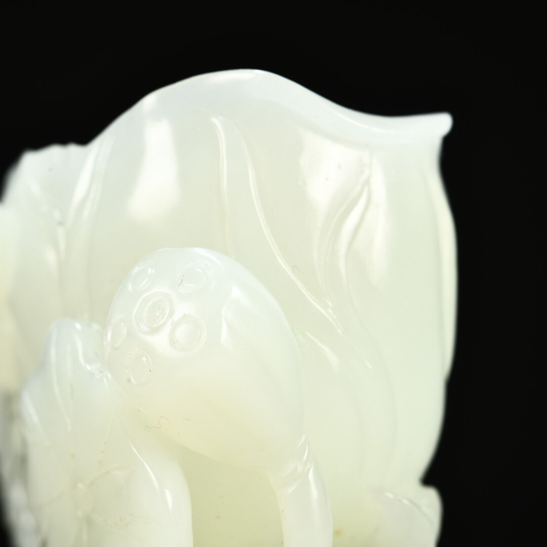 【瓏】和田玉 白玉彫 一品清廉 筆洗 清時代 極細工 手彫り 置物擺件 中国古賞物 古美術 蔵出