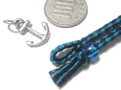輪にイカリを引っ掛けて留め、ビーズを持って房を引くとサイズ調整できます。