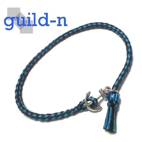 【guild-n★ マリンブルー ブラック 碇 イカリ アンカーフック ヘンプ 麻 アンクレット ブレスレット ミサンガ メンズ レディース】