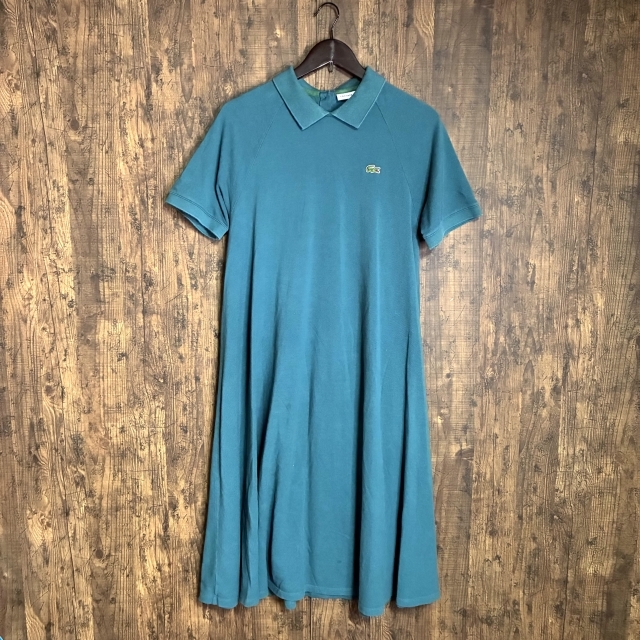 M69◇LACOSTE | ラコステ 半袖ポロワンピース ダークグリーン レディース 38サイズ 中古品