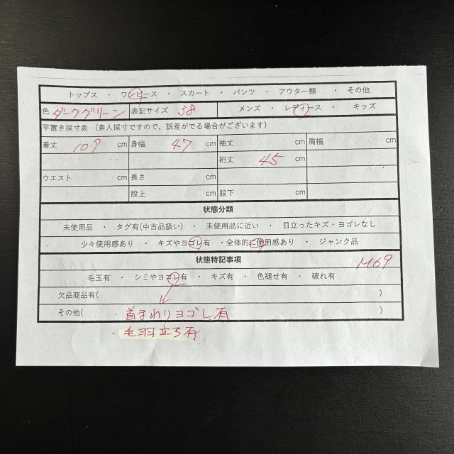 ・その他(首まわりヨゴレ有、毛羽立ち有)