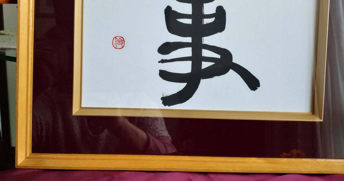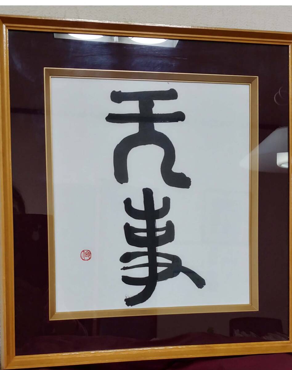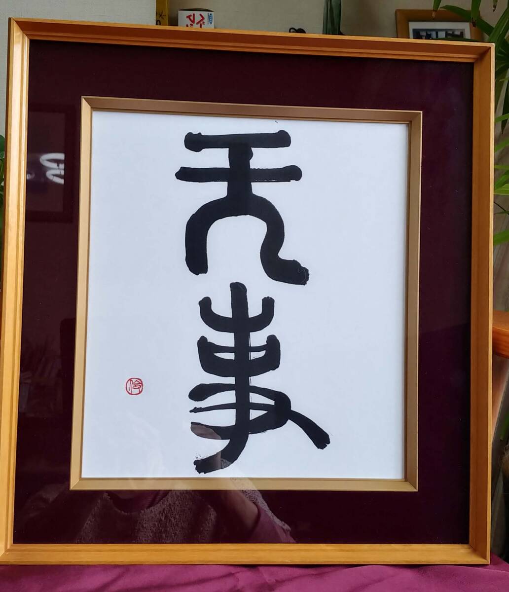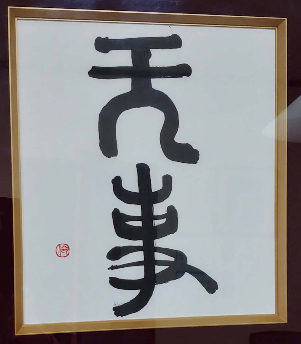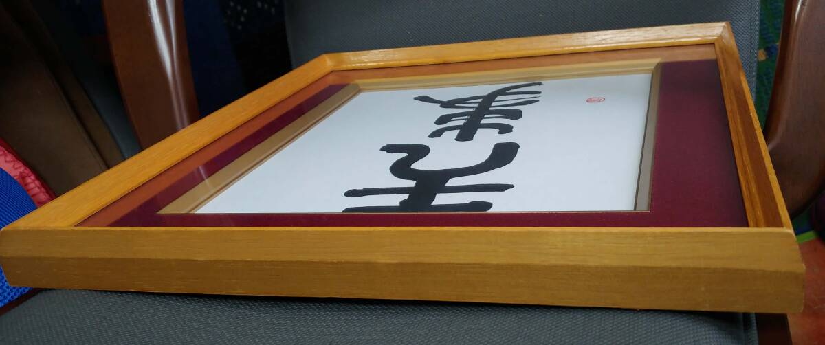 色紙・デザイン書「無(无)事」篆書体のデフォルメ文字・濃墨にて揮筆/外寸38cmⅹ35 内寸28cmⅹ25 重さ1.1kg