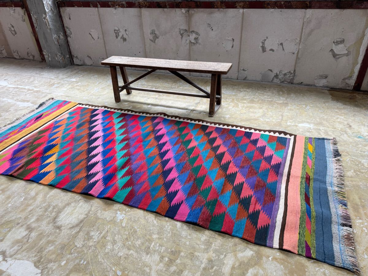 ¥28,000→¥18,000 トライバルラグ ヴィンテージ家具 268×110cm 手織り 絨毯 カーペット ヴィンテージ ラグ ペルシャ絨毯