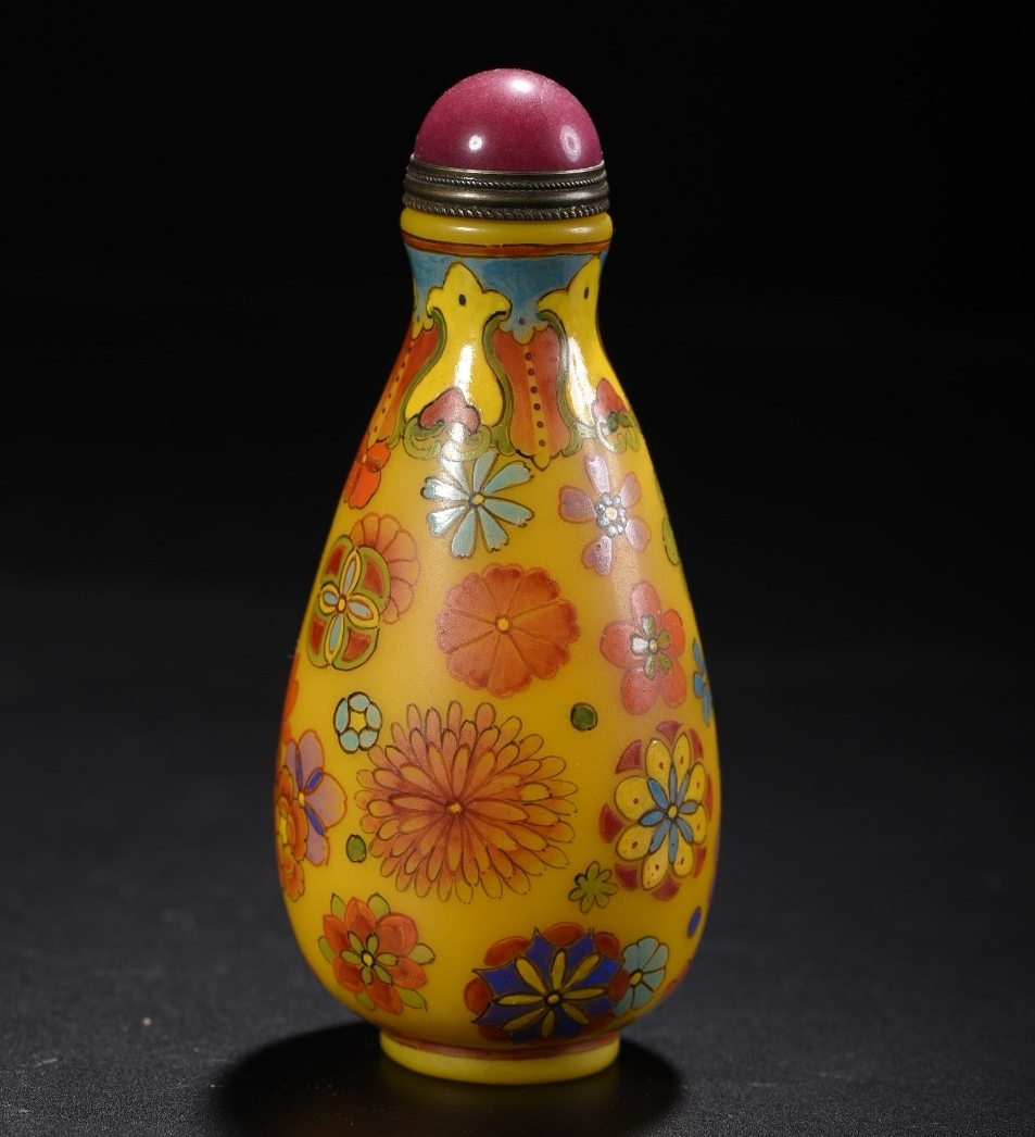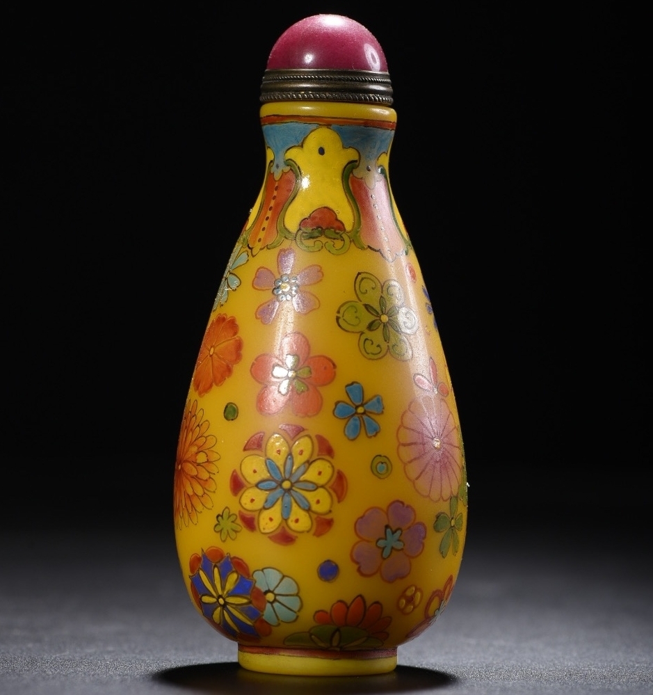 *珍品旧蔵* 清 乾隆年製 琉璃畫 エナメル花卉紋 鼻煙壺 極細工 唐物 中国古玩 骨董品 古美味 H45