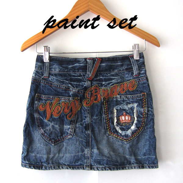 美品 paint set/ペイントセット★ デニム USED加工 ミニスカート