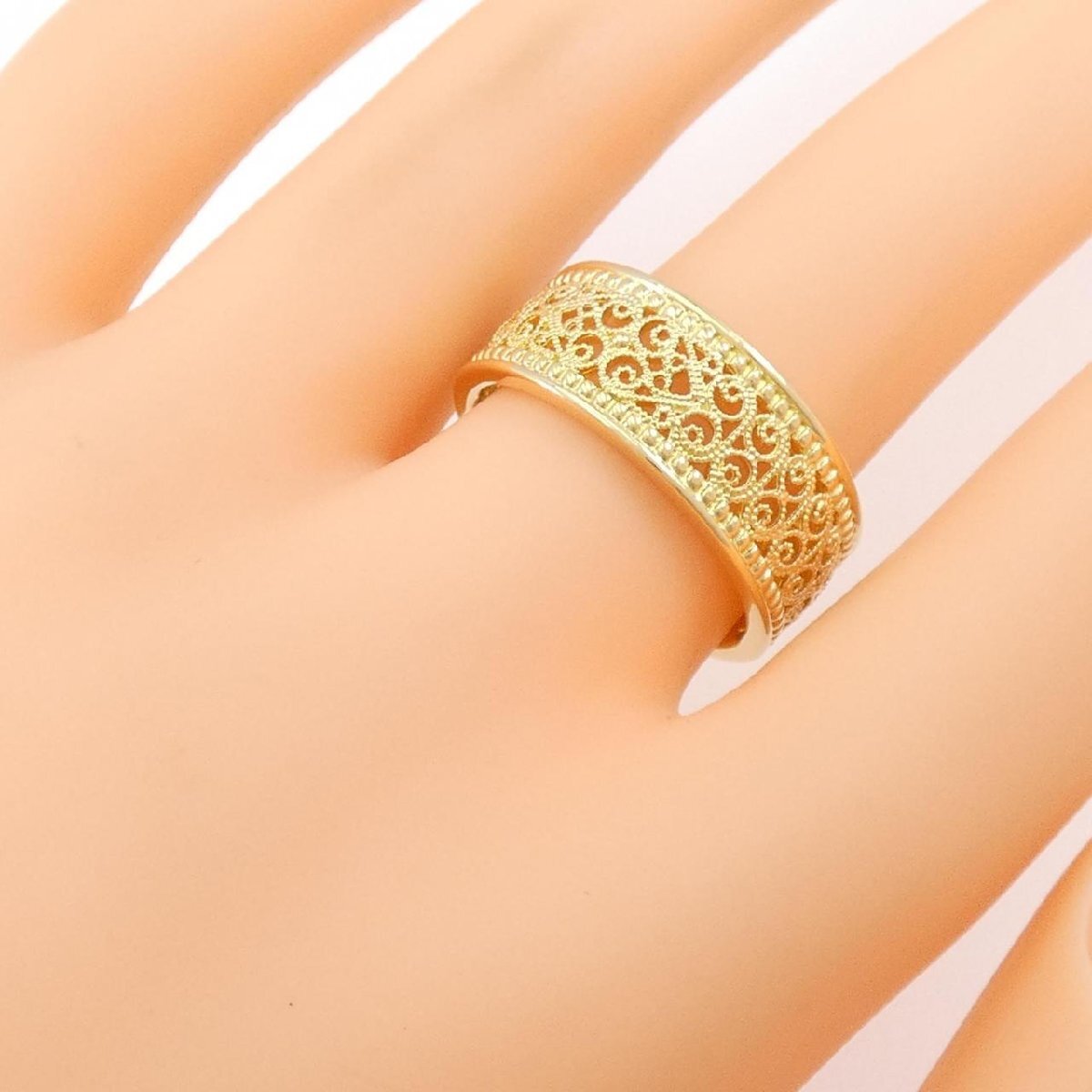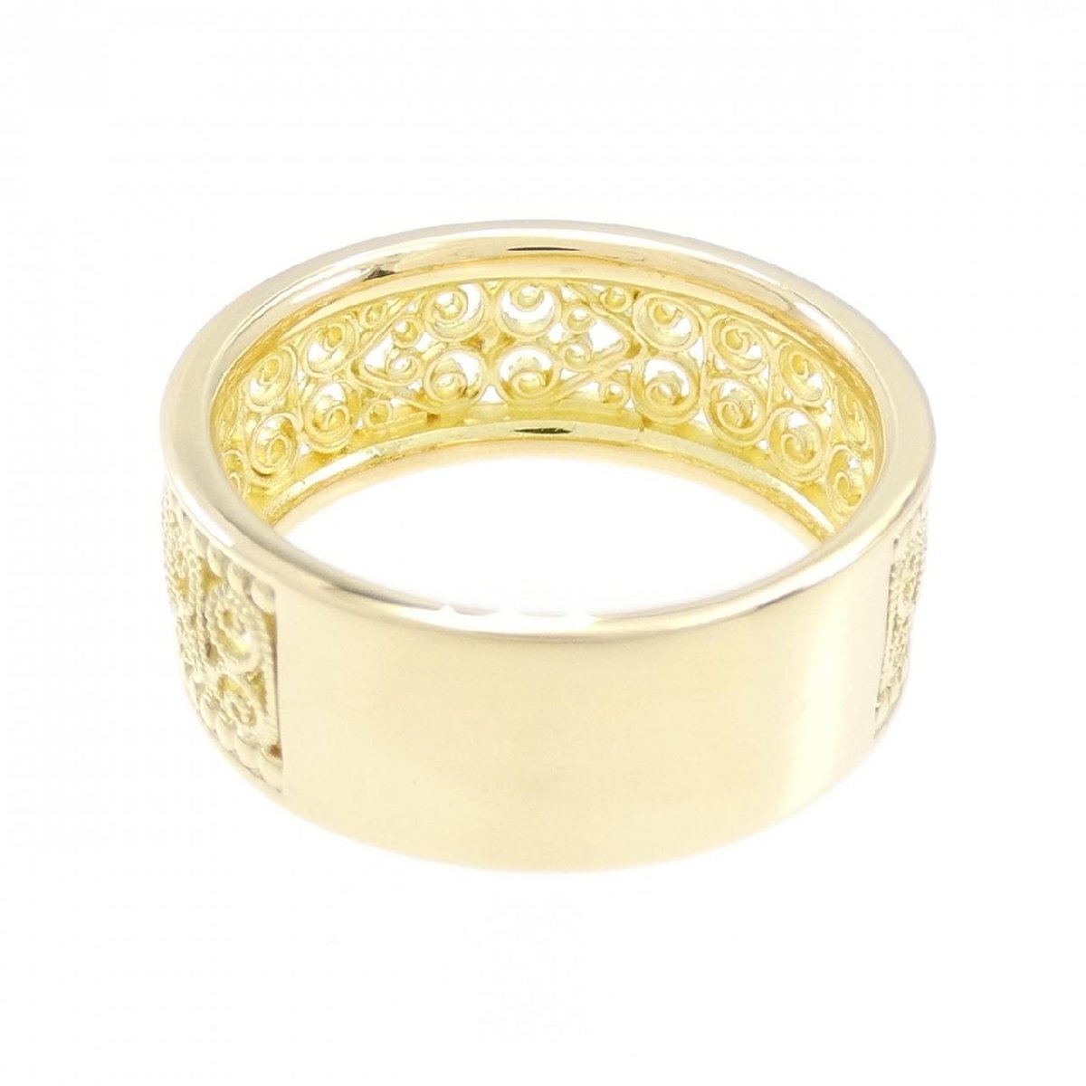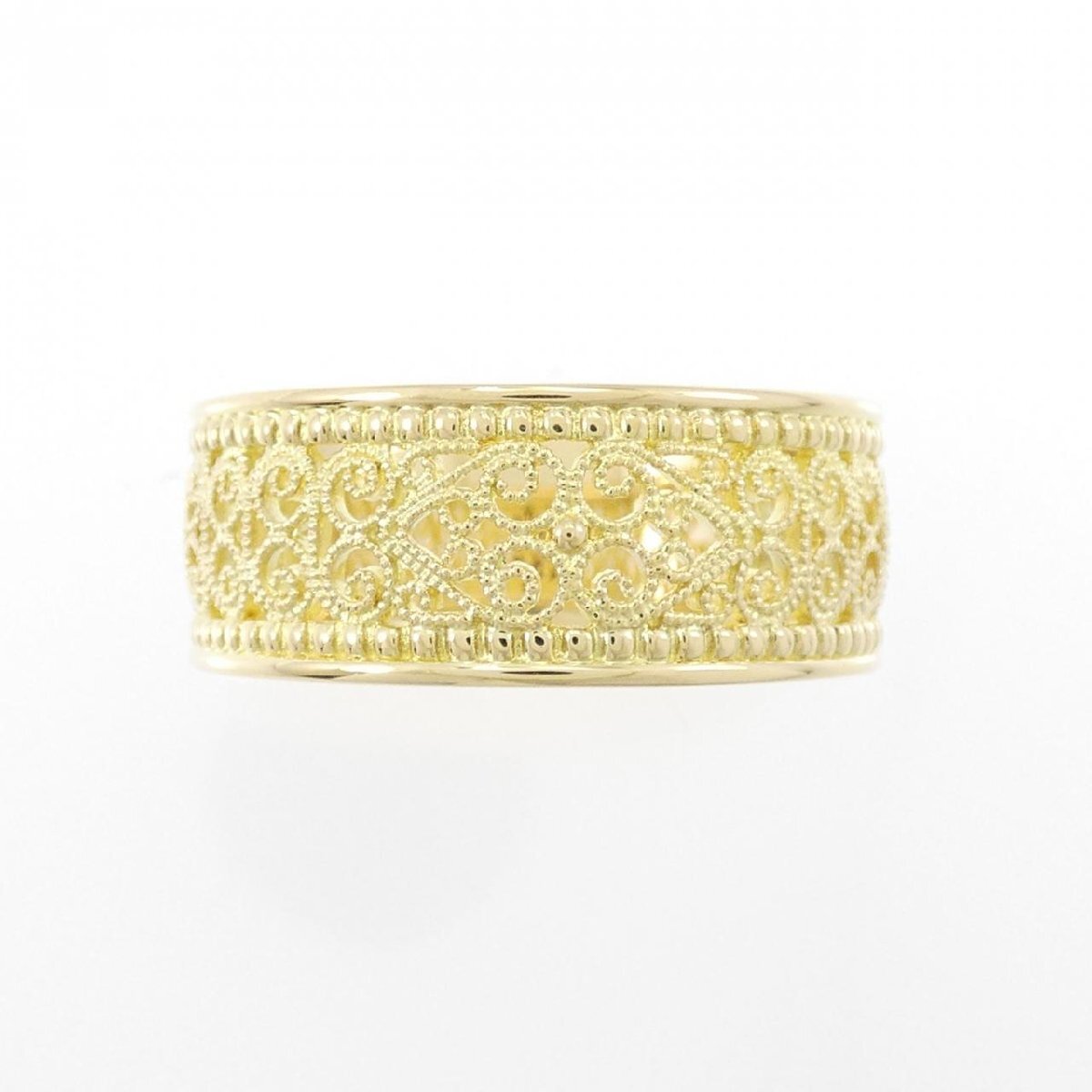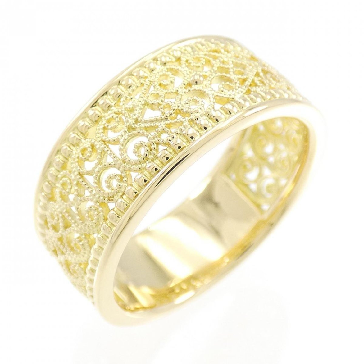 繊細な透かし模様が施されたリング。明るいイエローゴールドのジュエリーです。