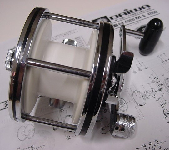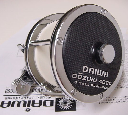 ■オールドDaiwaのDozuki-4000です。これは軽量強化プラスチック樹脂スプール搭載で、ラインキャパが少ないので下巻きなしでPEラインを張るのには好都合です。しかもサビないのでPEラインでの運用がオススメです!!:::::★基本スペック:::ギア比=1:3.4、自重=620g、糸巻量(ナイロン):5号-500m、8号-300m、10号-200m。釣力=14Kg位。-----------★Penn Senetorなら4/0を狭くしたようなサイズで、磯の石鯛釣りや、船釣り全般にも使える手ごろな中型サイズです。スタードラッグは付いていませんが逆転フリークラッチが付いています。フリースプールクラッチは巻き上げと同時に自動駆動します。カップはメタルリングでしっかり縁強化し、スプール軸受けにはボールベアリングを入れて本格的な造りです。