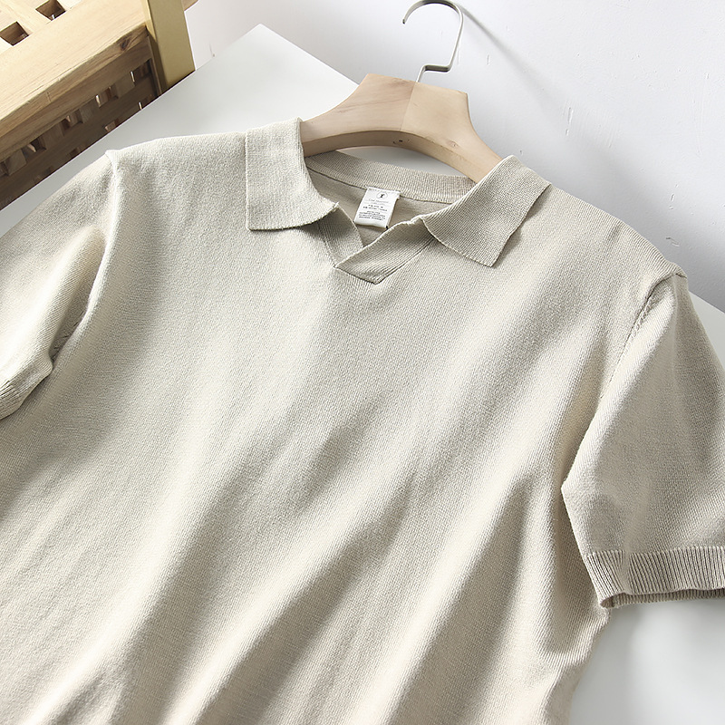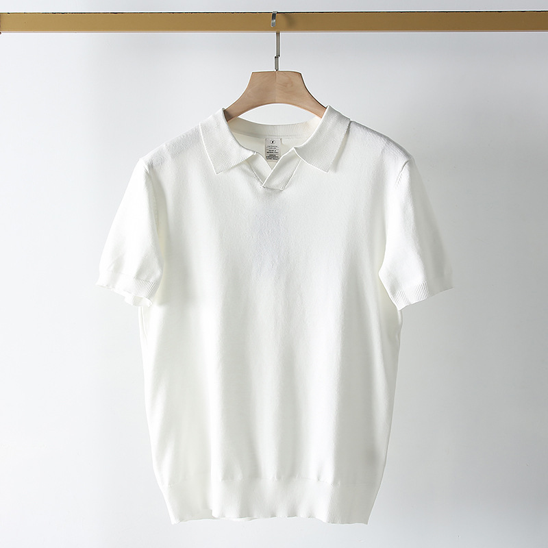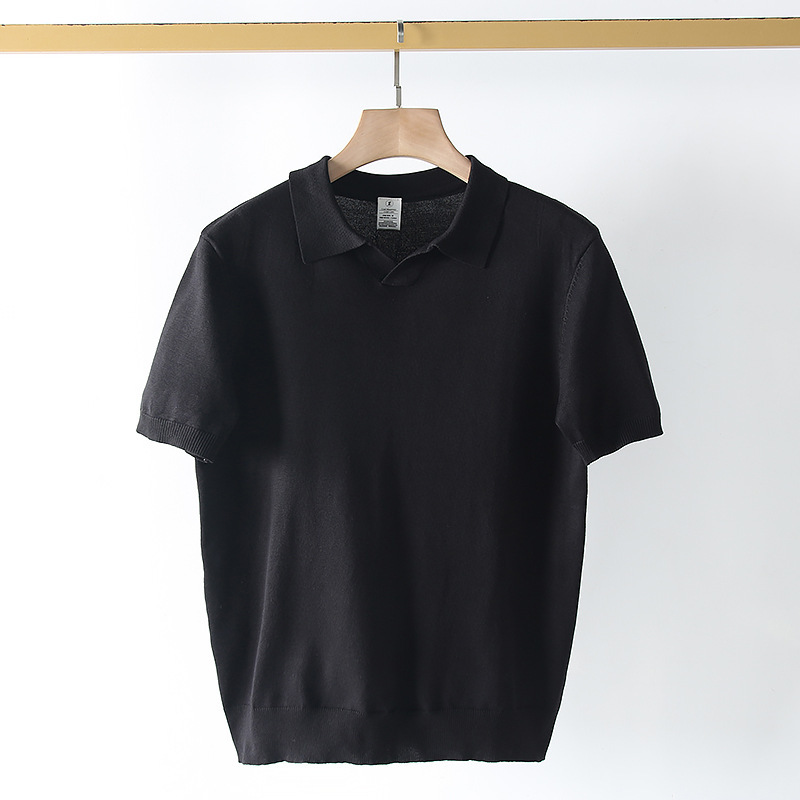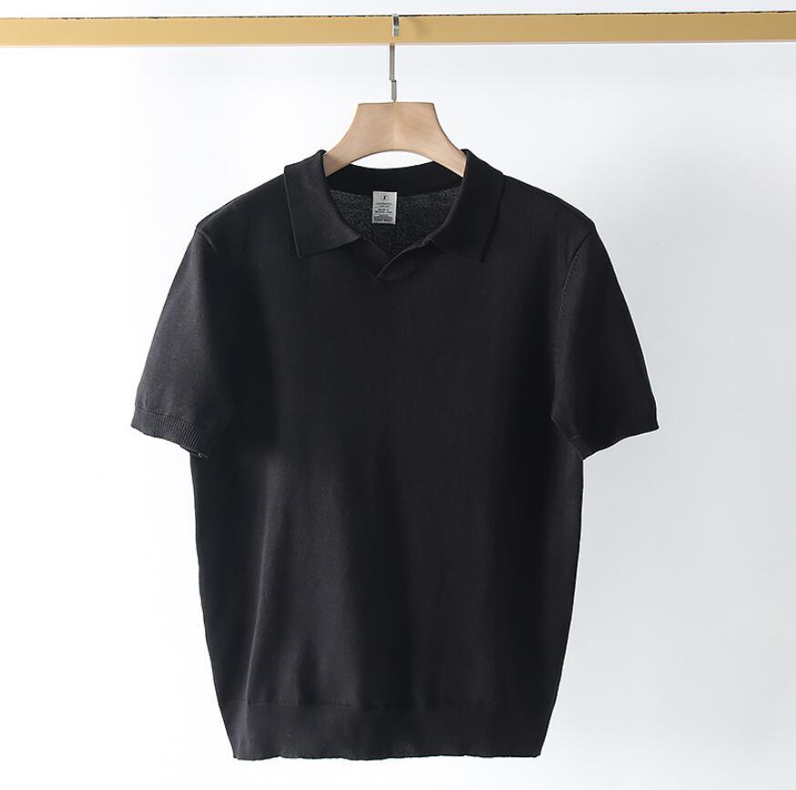 人気2XL 新品 テンセル混 サマーニット メンズ ゴルフ ストレッチ 半袖 ポロシャツ 夏 薄手 柔らかい 涼感 スキッパー Tシャツブラック