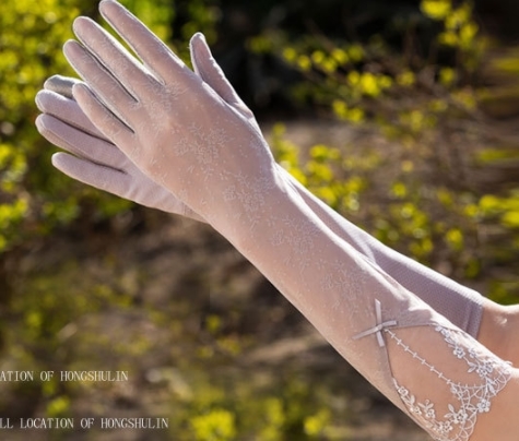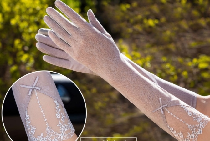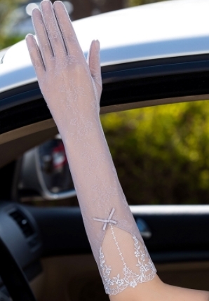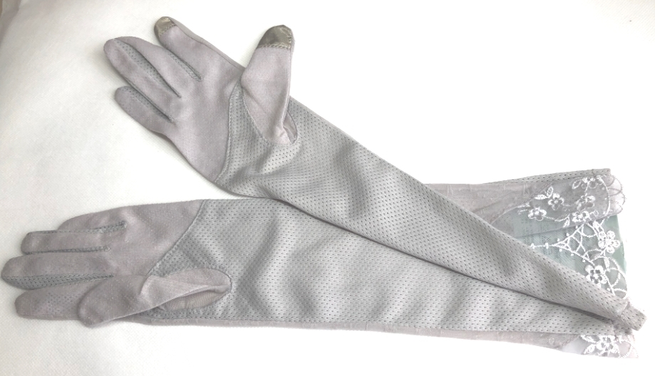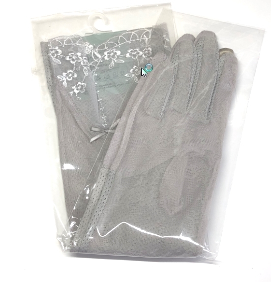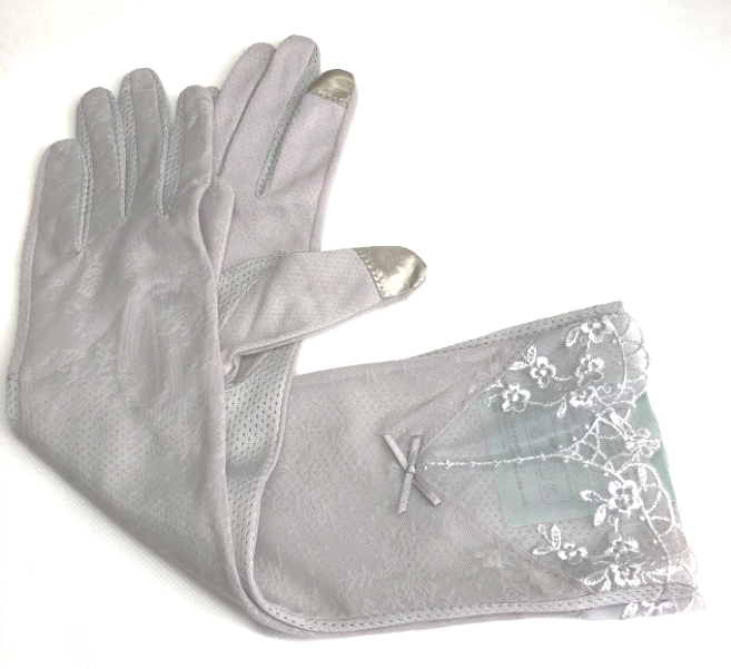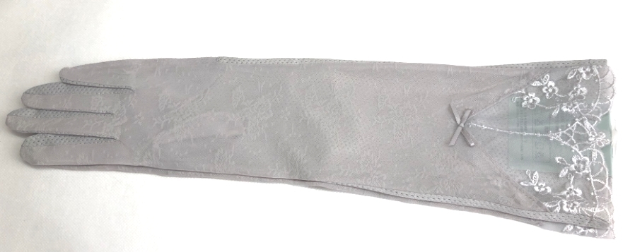 レディース UVカット日焼止め 花刺繍、リボン飾り手袋(F07D)グレー