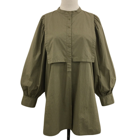 フリークスストア FREAKS STORE チュニック ブラウス シャツ バンドカラー 無地 長袖 F 緑 グリーン レディース