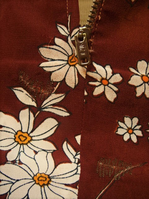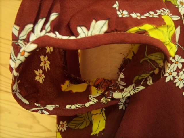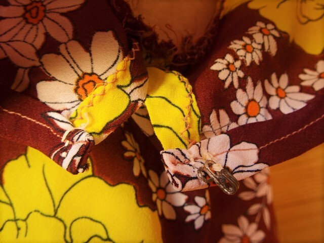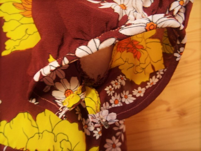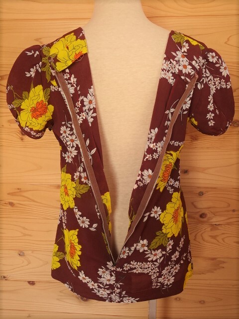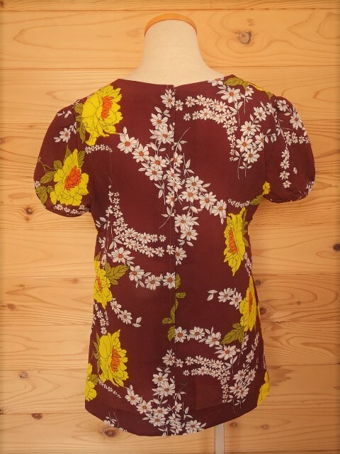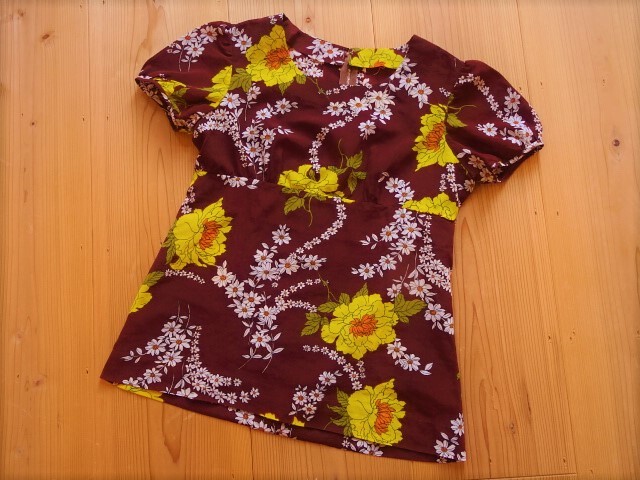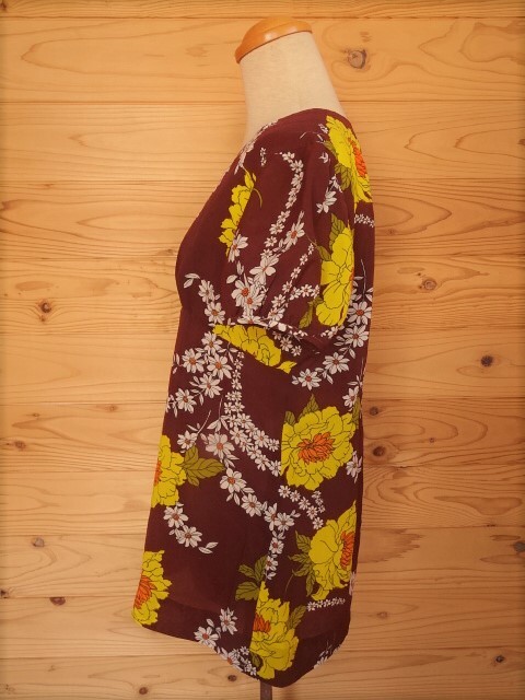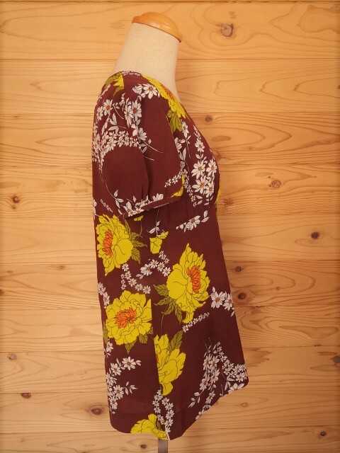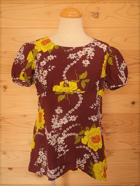 US古着 ヴィンテージ チュニック パフスリーブ エンパイア フラワー 花柄 VENUS レトロ 60s70s80s90s 個性派 茶色 オールド アメリカ USED