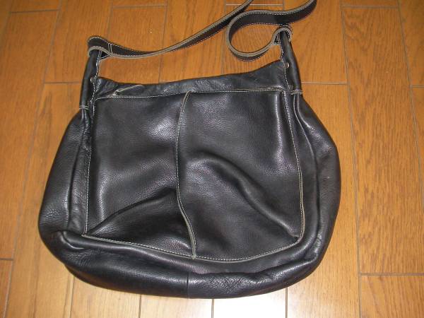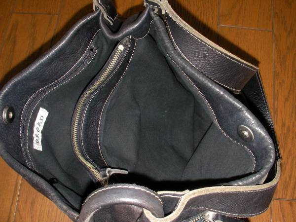 BROADのショルダーバック 革製 黒色 サイズ 縦30cm 横35cm 巾10cm 中古品で外部の内側汚れ等使用感あります