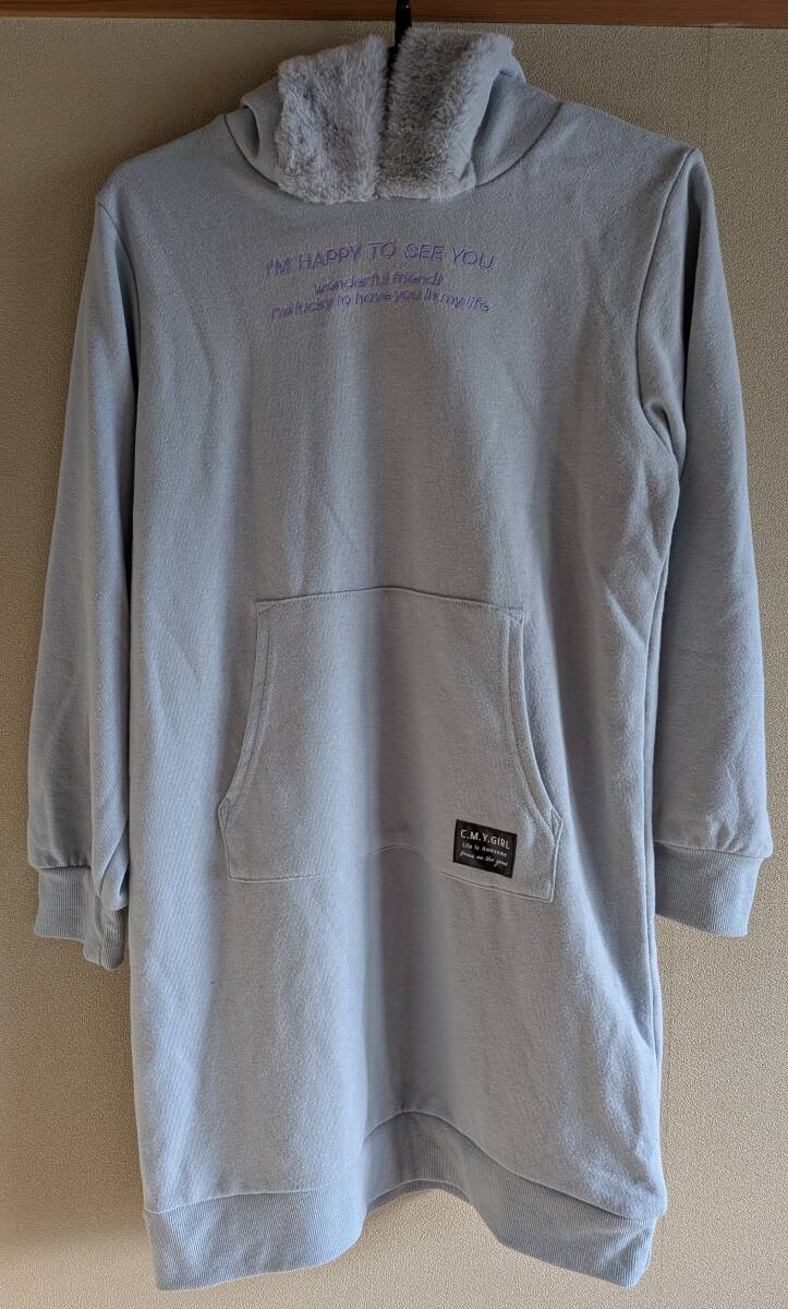 【未使用・タグ付】〈chummy〉 女児フード付ワンピース XS(135~145cm) 青灰色 2000円~