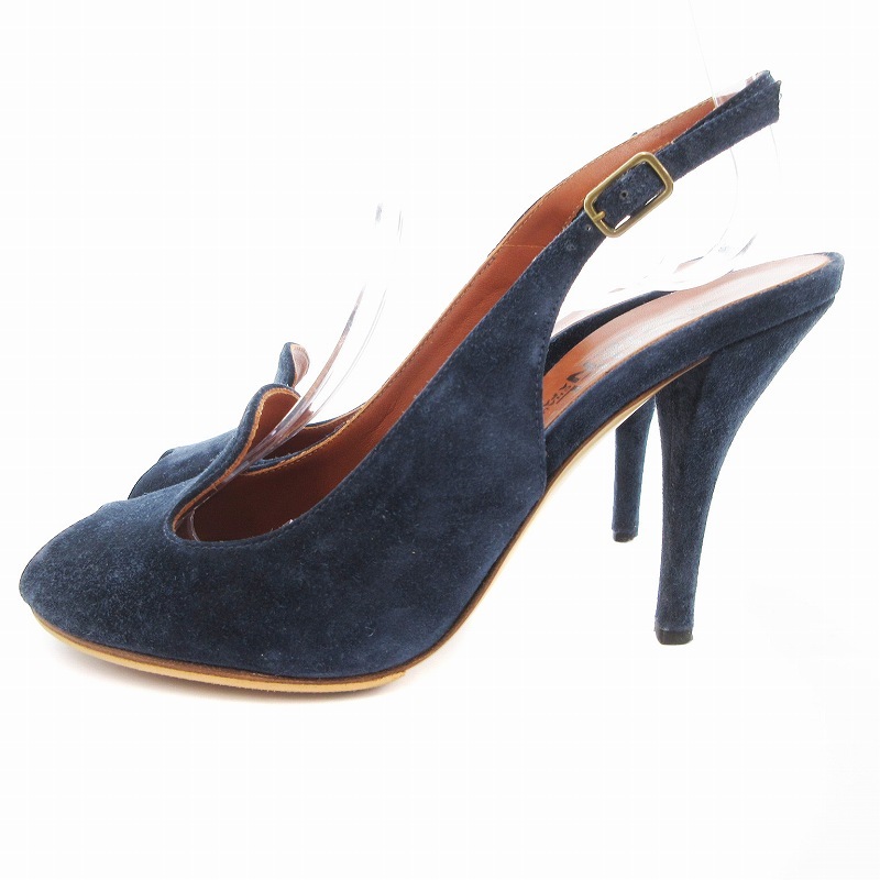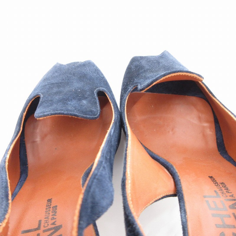 ミッシェル ヴィヴィアン MICHEL VIVIEN スリングバックサンダル オープントゥ スエード 35 紺 ネイビー /JS レディース