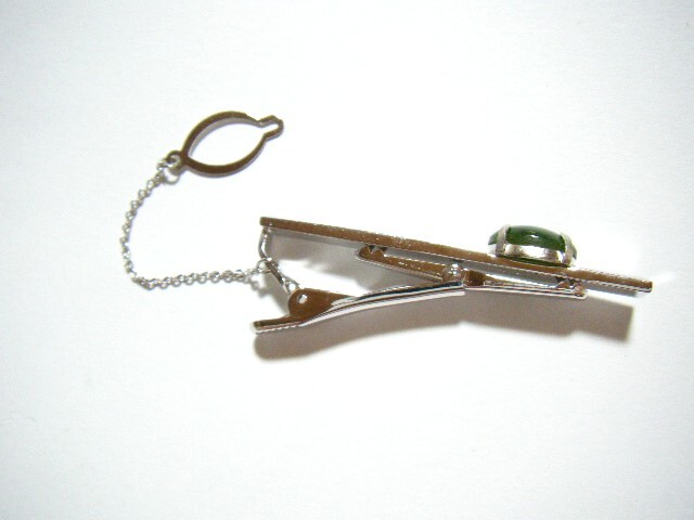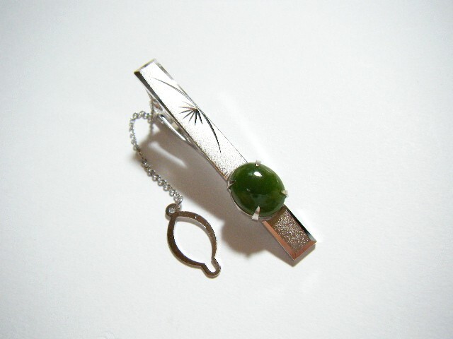 ★ネフライト? ネクタイピン タイピン 緑色系 シルバーカラー 【BR9】