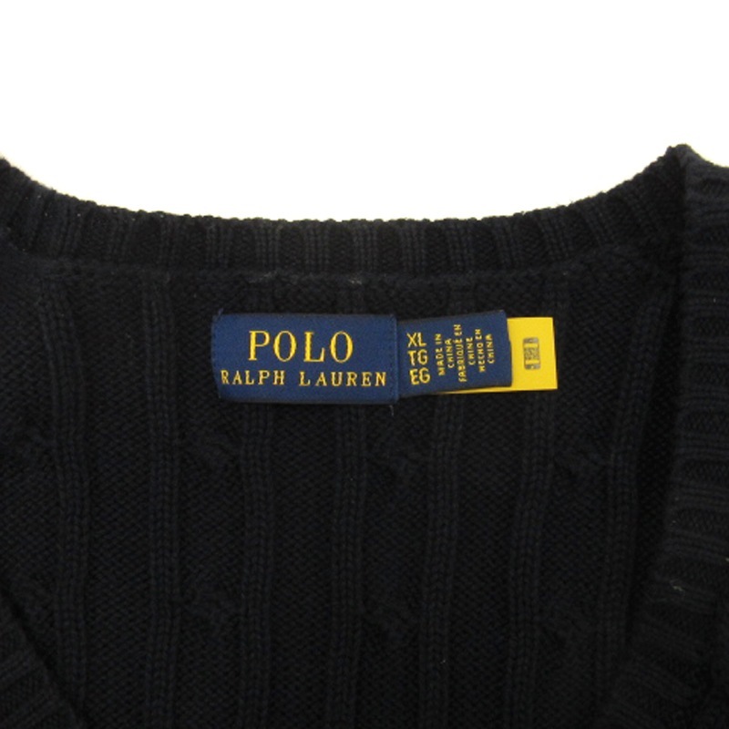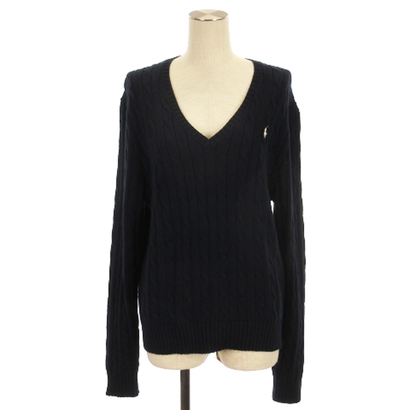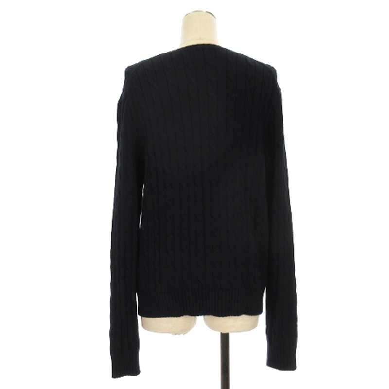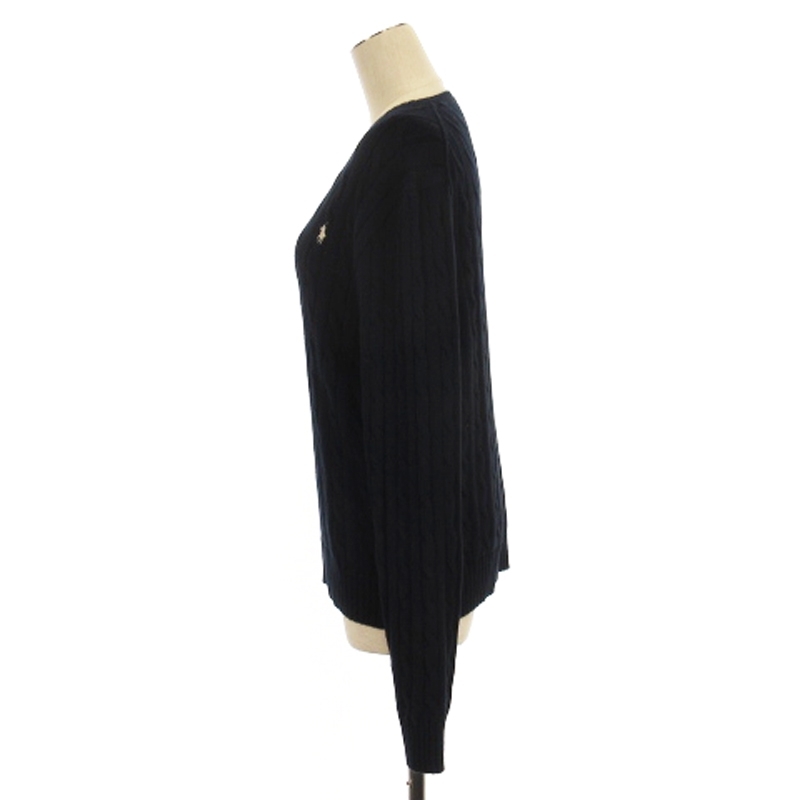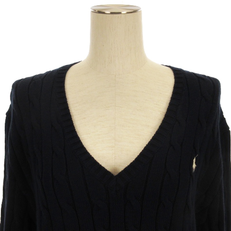 ポロ ラルフローレン POLO RALPH LAUREN Vネック ケーブル ニット セーター 刺繍 コットン ネイビー XL レディース