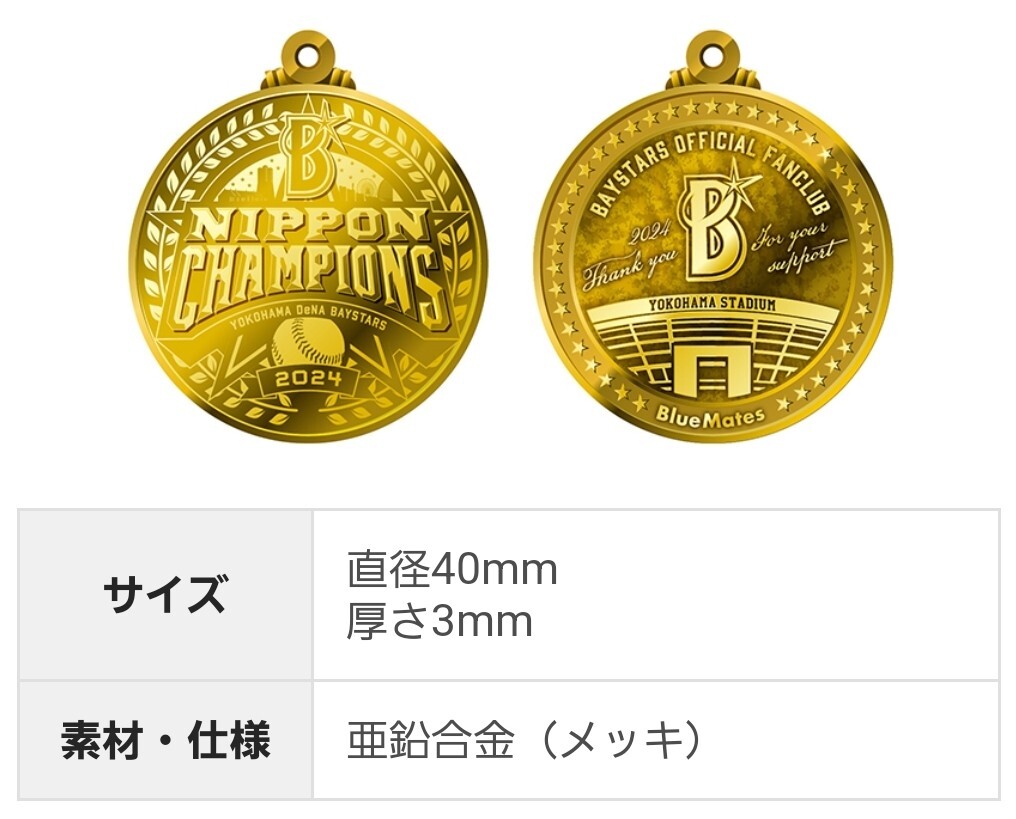 横浜DeNA ベイスターズ 2025年 BlueMates ブルーメイツ ファンクラブ特典 リュック 優勝記念メダル