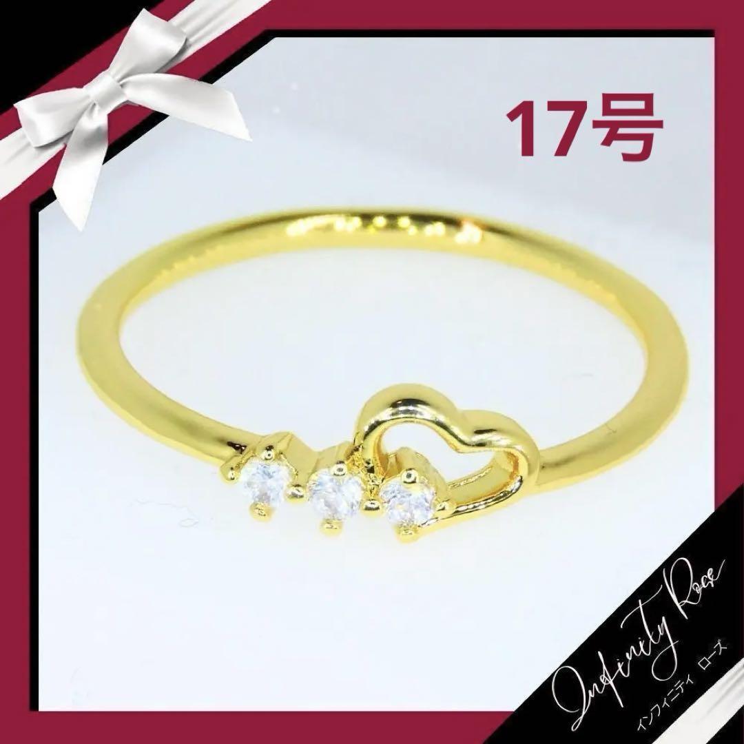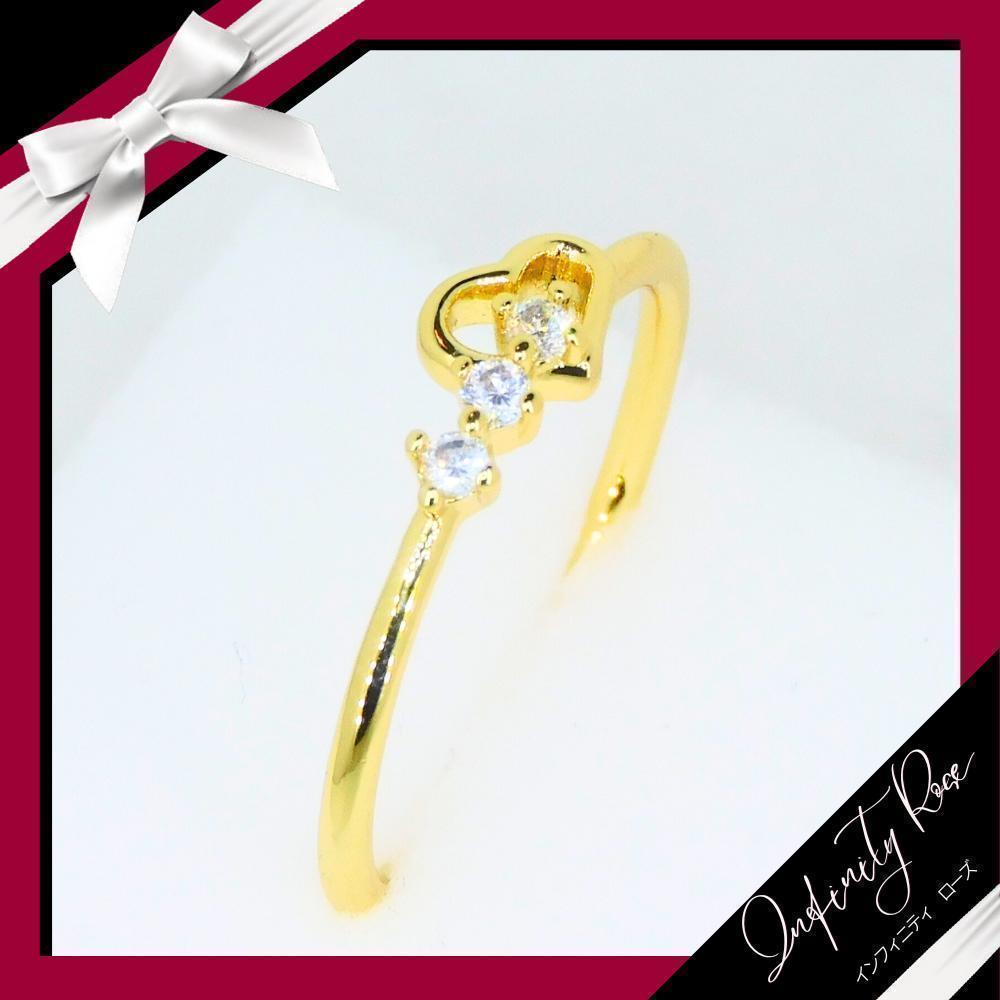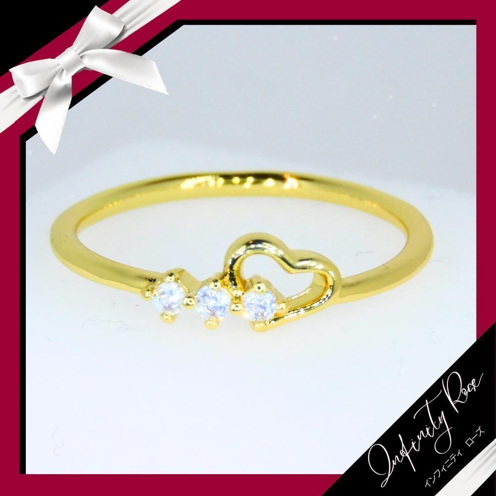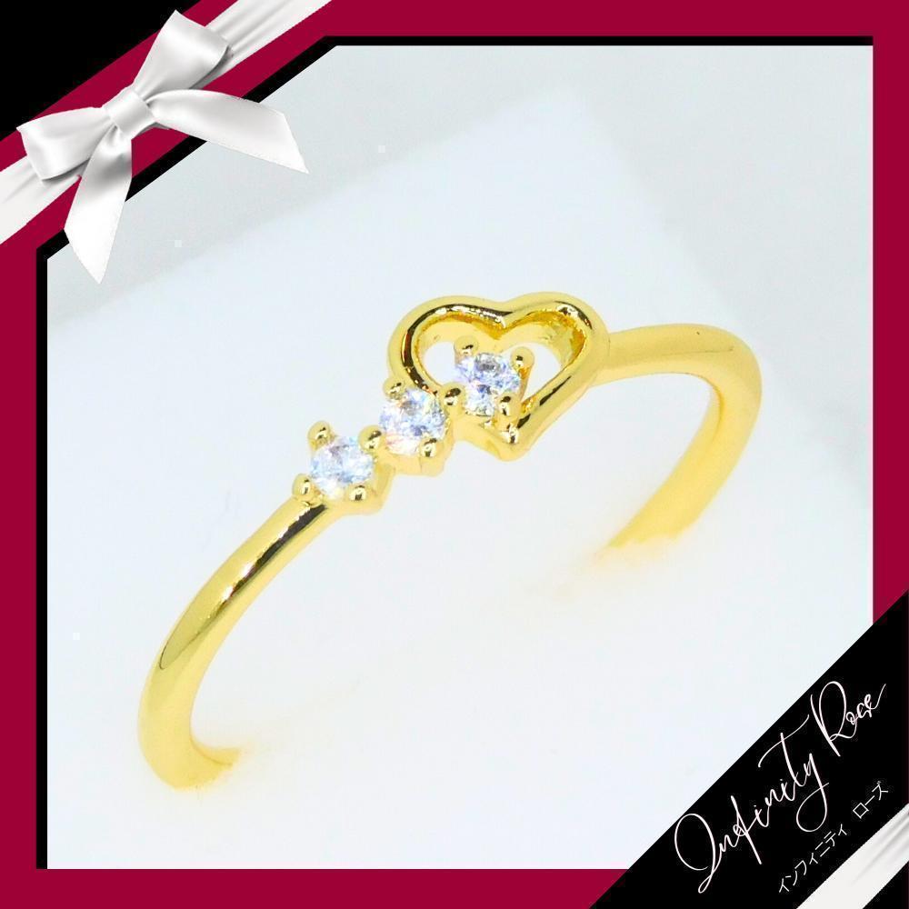 (R013G)17号 ゴールド可憐な大人可愛いジルコニアハート細リング 指輪