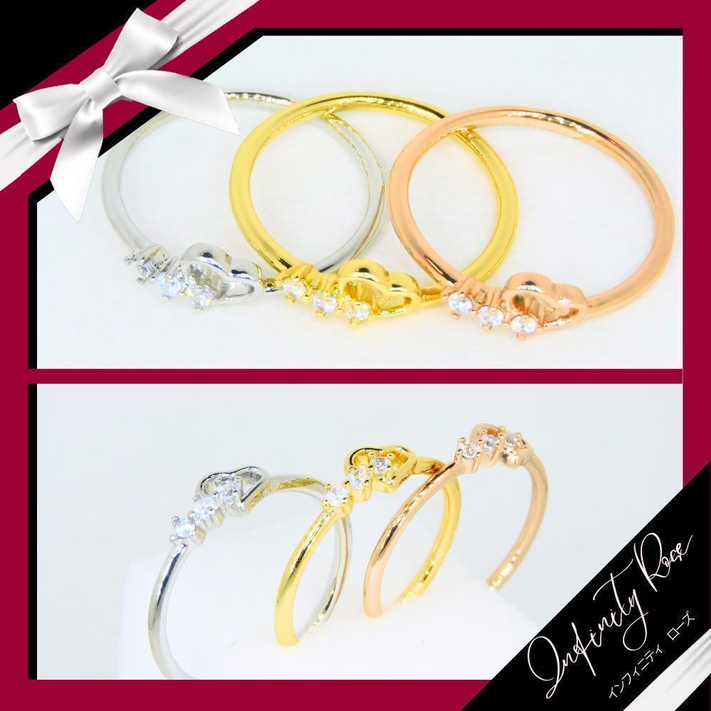 #ゴールド可憐な大人可愛いジルコニアハート細リング