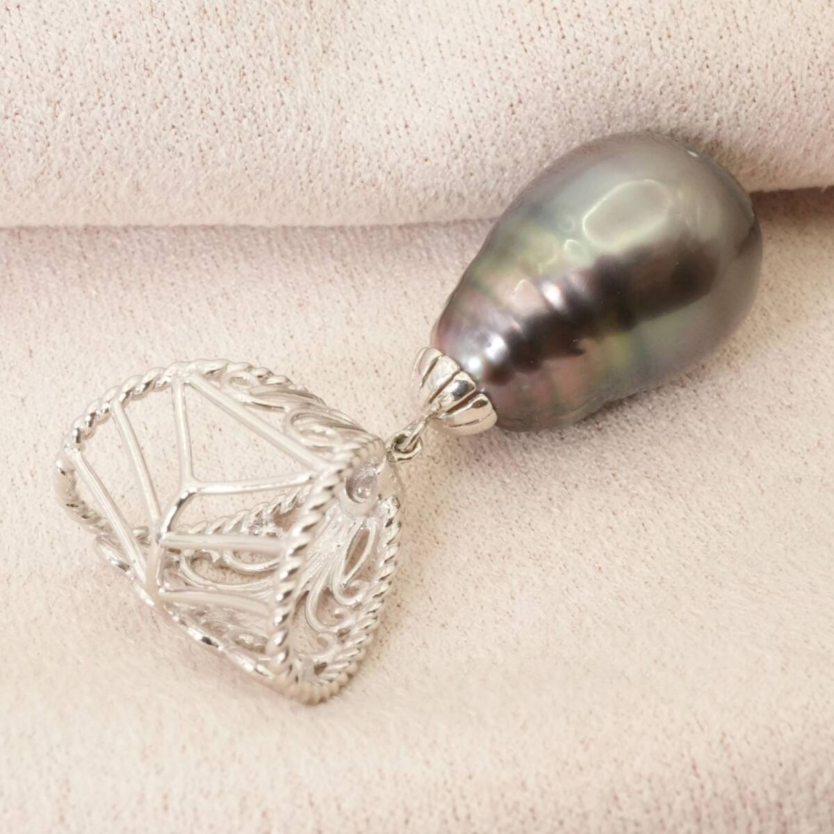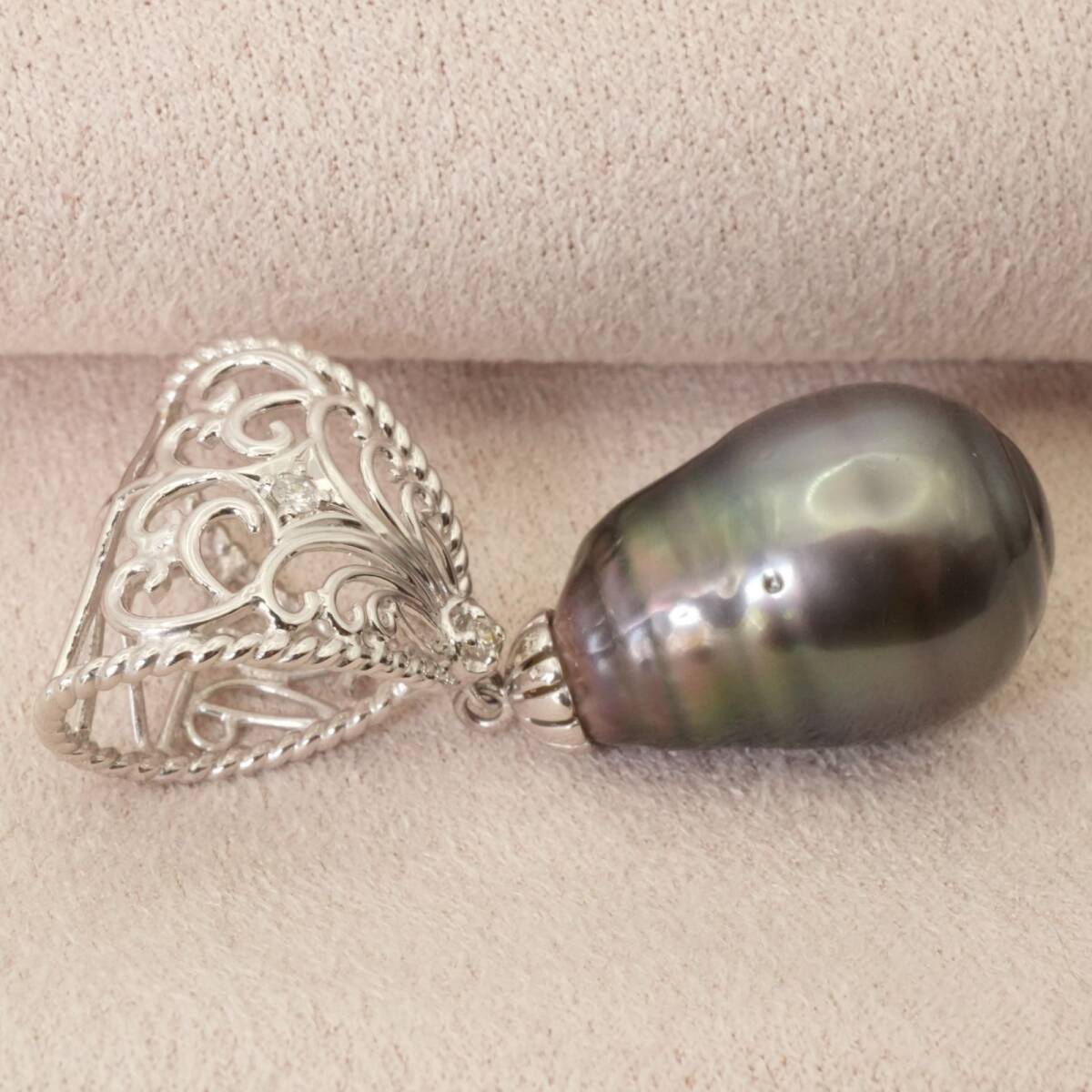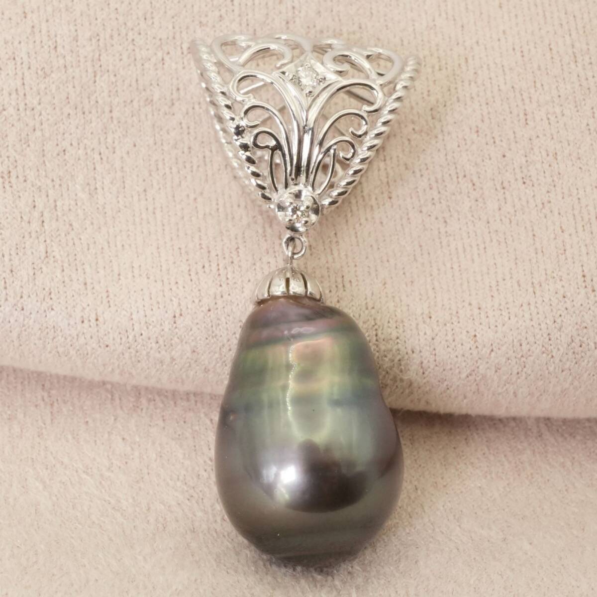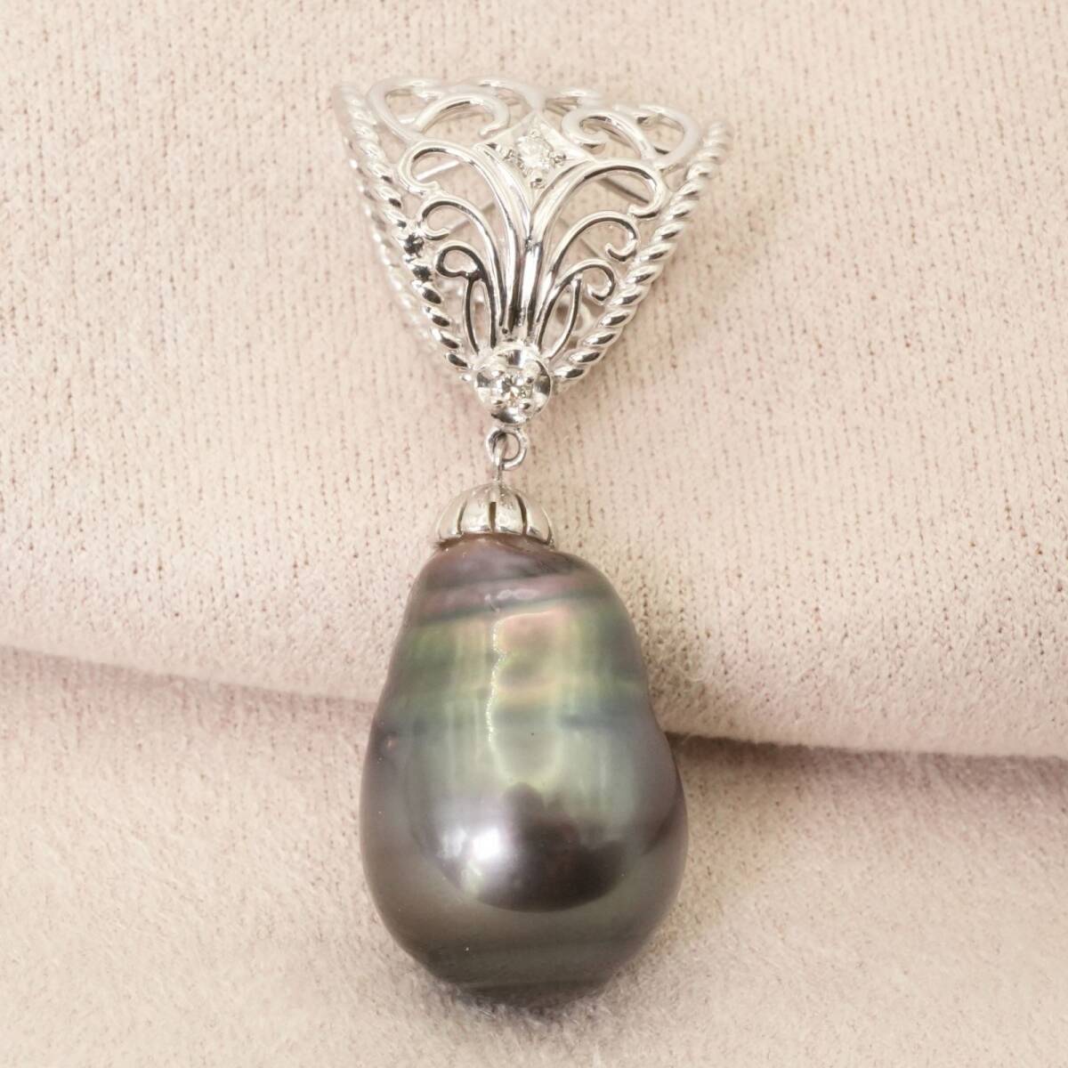 美品 Pt900 バロック 透かし ペンダントトップ ダイヤ/24-5857S