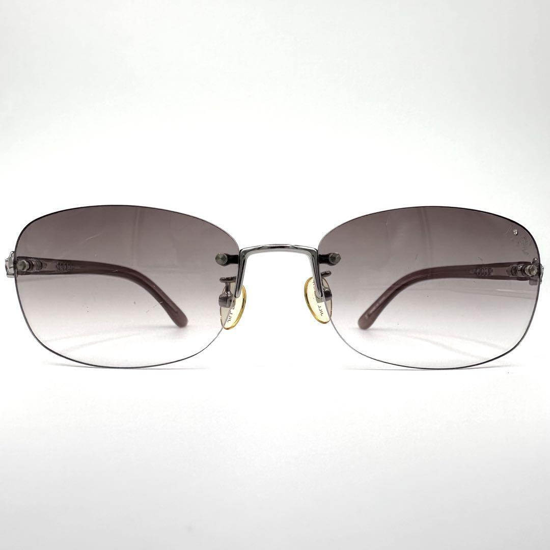 サングラス アイウェア メガネ 眼鏡 度なし ラインストーン サイドロゴ ワンポイントロゴ リムレス 06-0466 5717-135