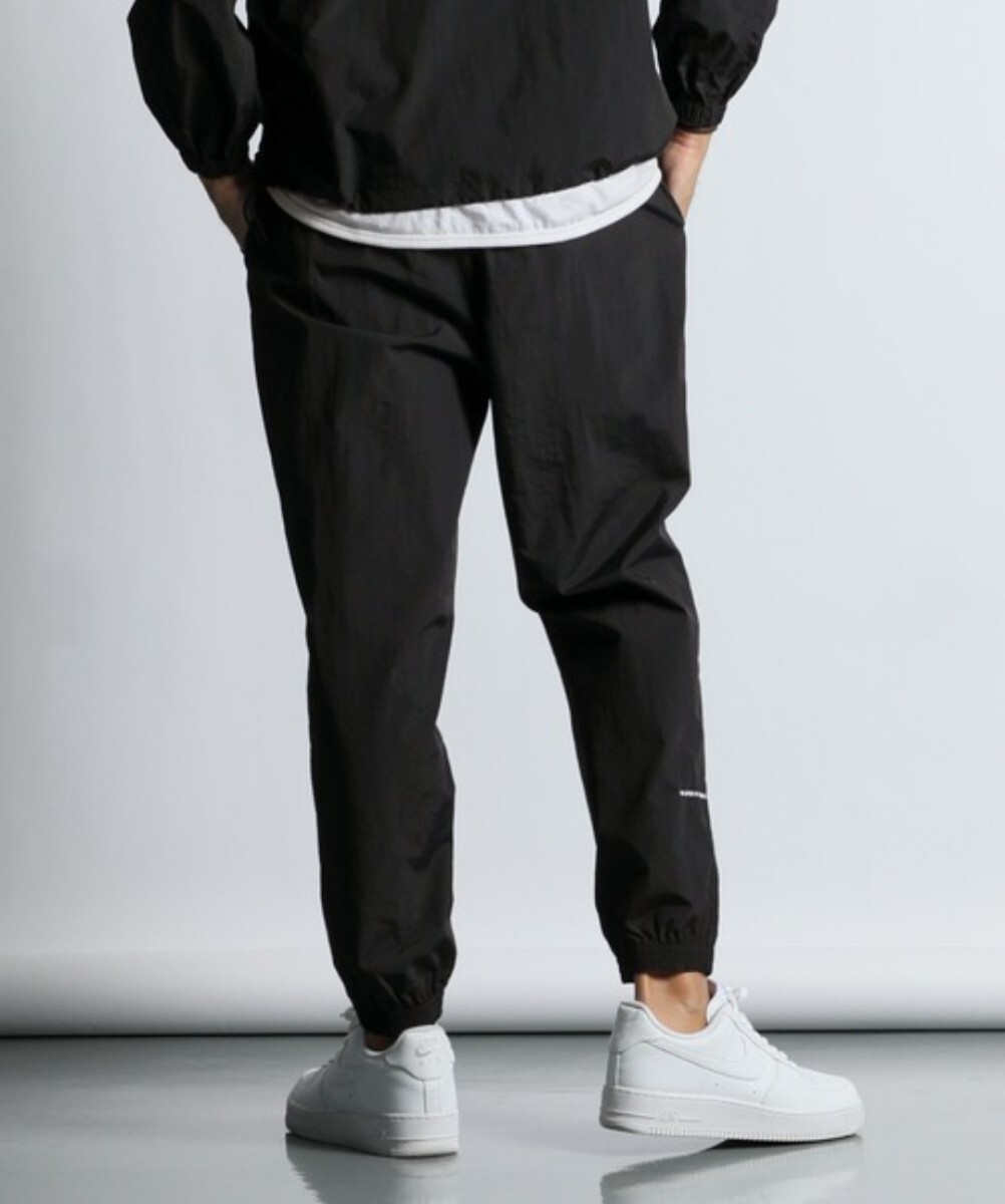 ・2000年代のストリートスタイルを彷彿とさせるイージーナイロンパンツ。ラフなスタイリングを演出する裾口のゴムシャーリング仕様やロゴ使いなど、アーバンスポーツスタイルのトレンドにマッチしたデザインとなっています。シルエットはルーズフィットで穿きやすさも抜群。