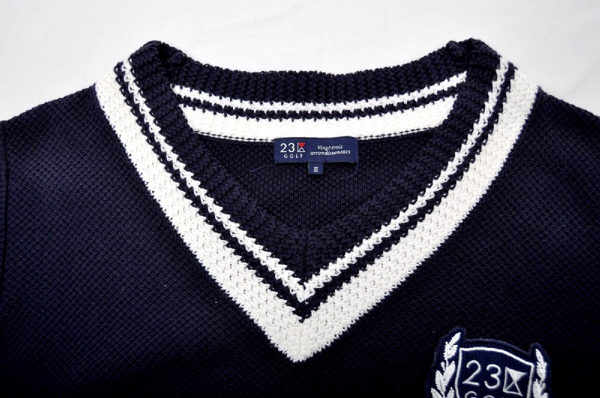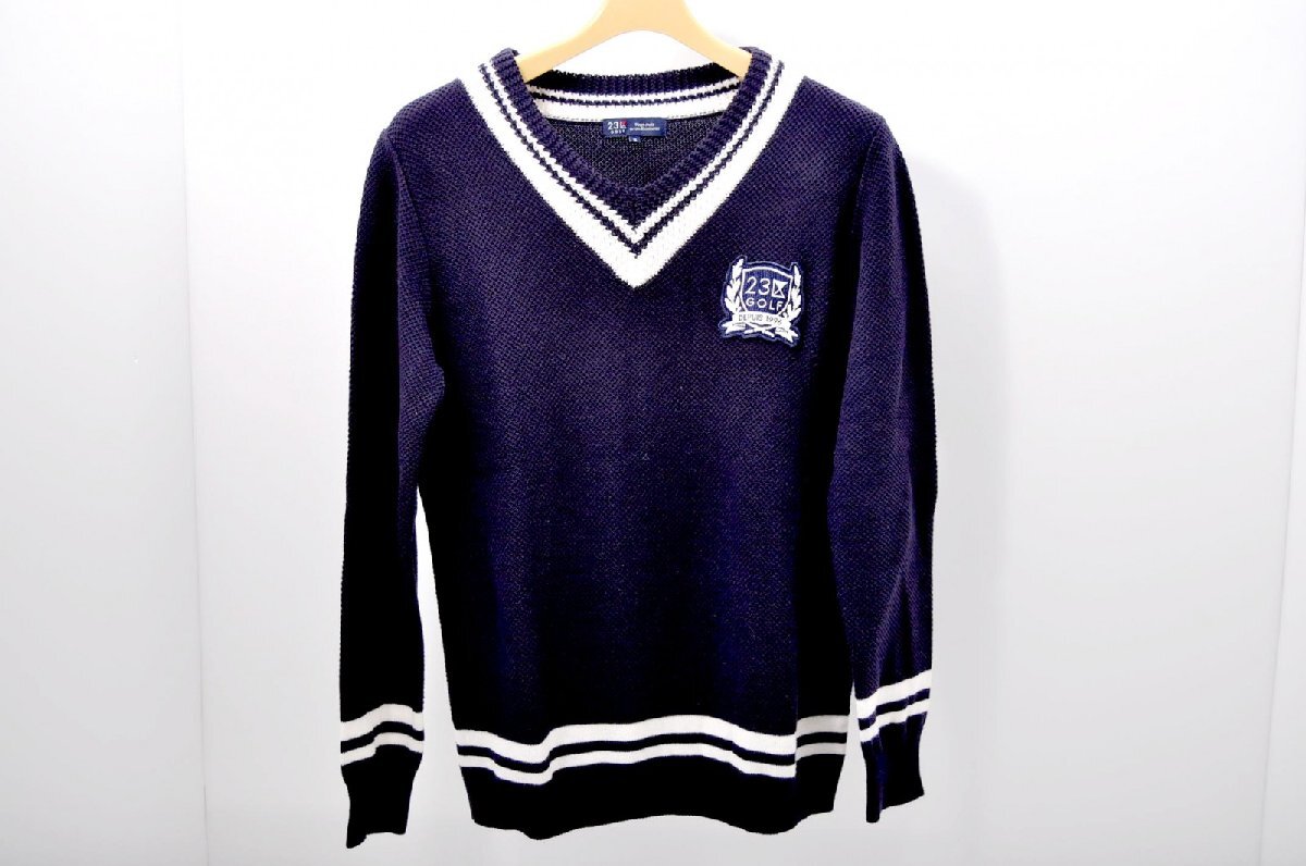 coco 中古 【値下げ】23区ゴルフ GOLF レディース セーター 2(L) 紺長袖 Vネック ニット ワッフル編み レターパックプラス発送可 83101