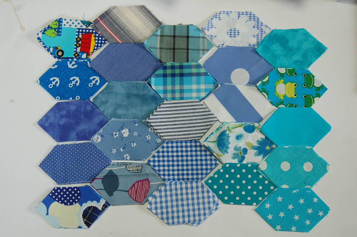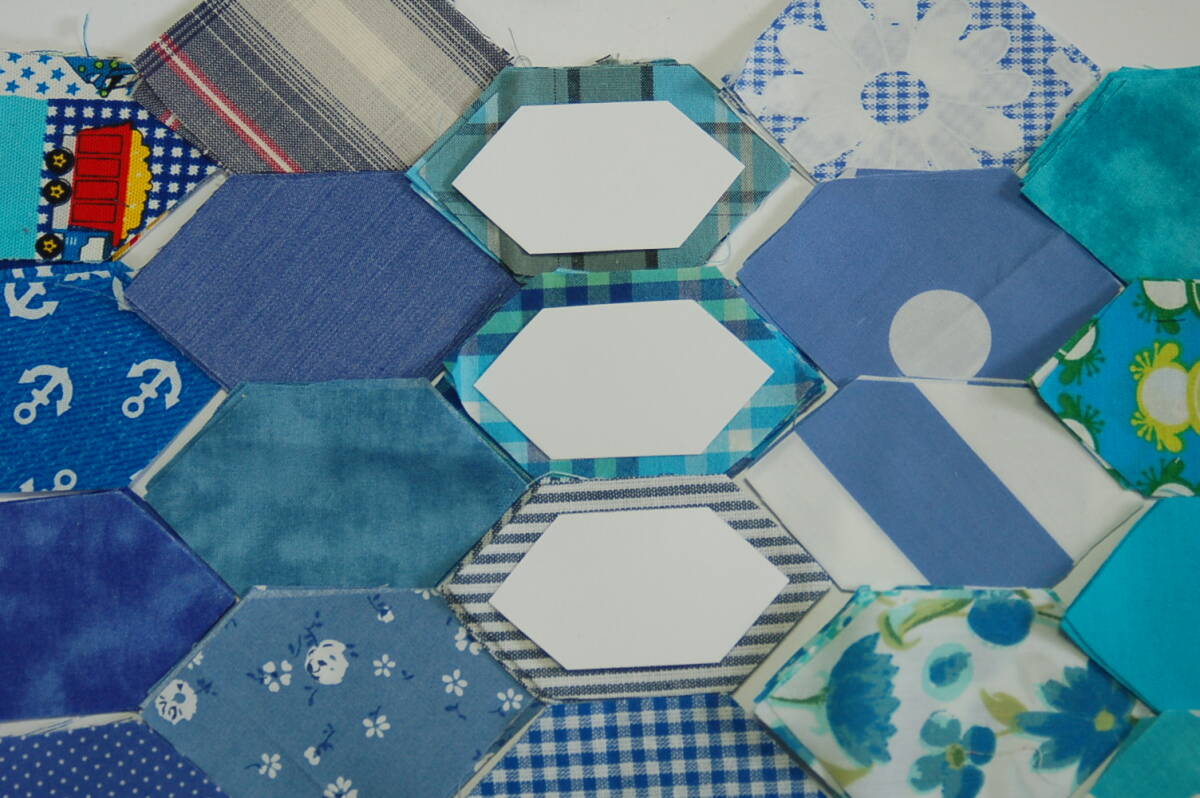 パッチワーク用細長六角形出来上がりサイズ22㎜に裁断してます。