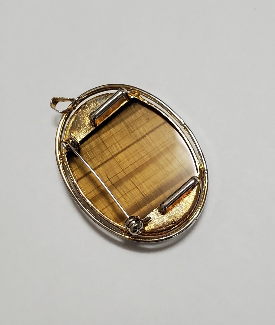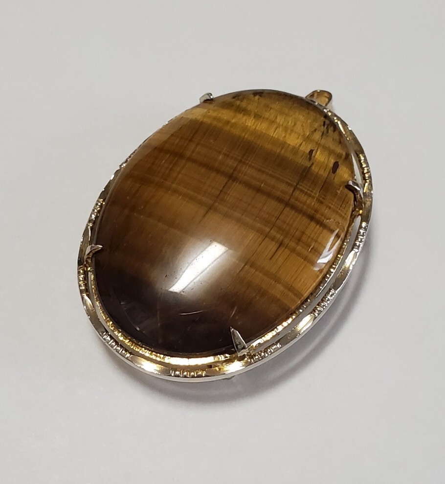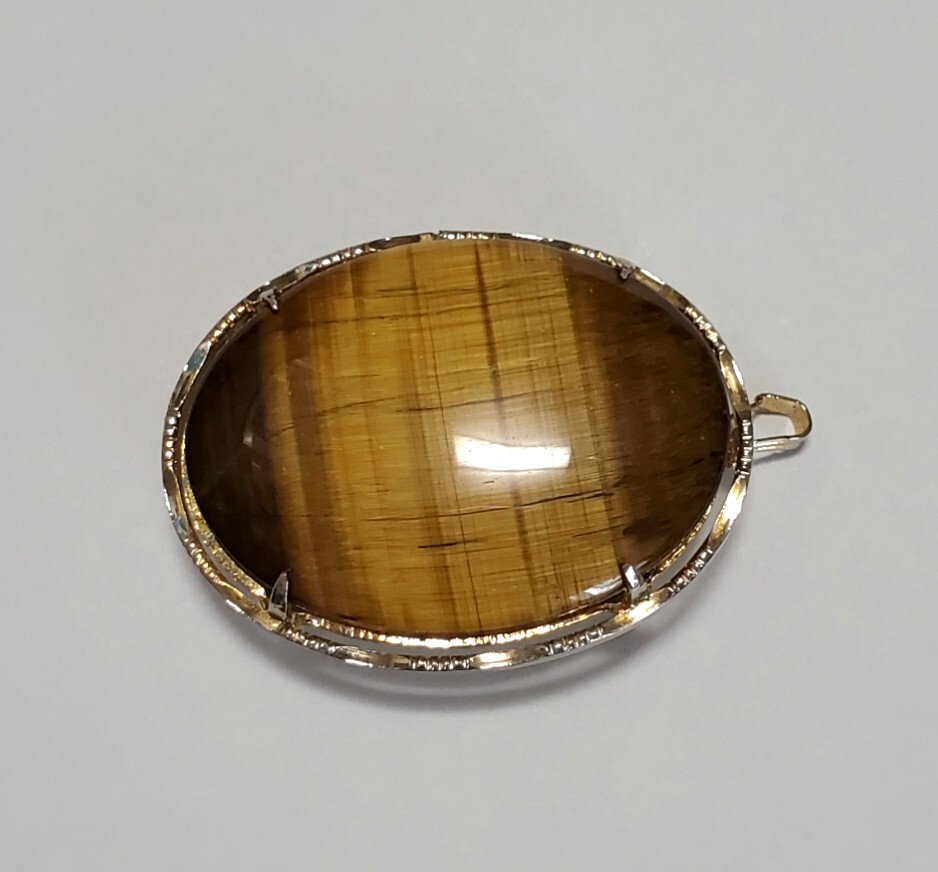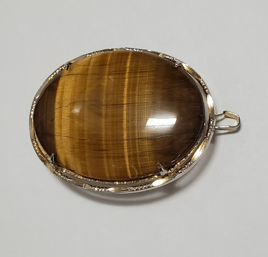 タイガーアイ カラーストーン 帯留め  ブローチ ペンダントトップ 和装小物 レディース  アクセサリー  17,6g