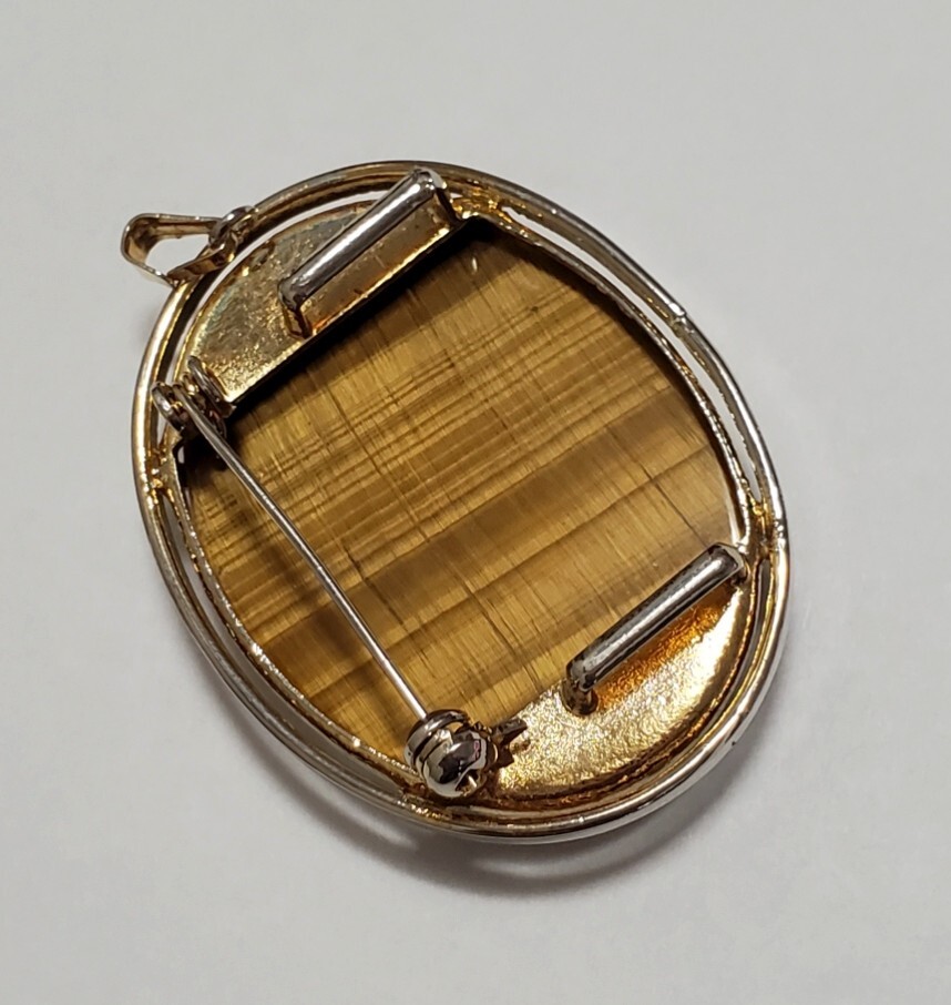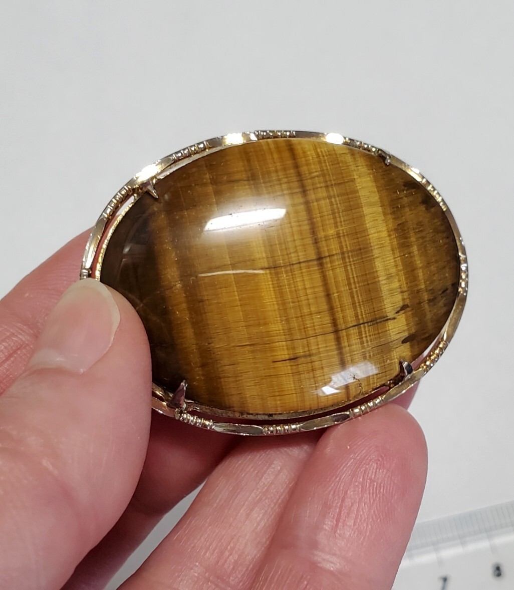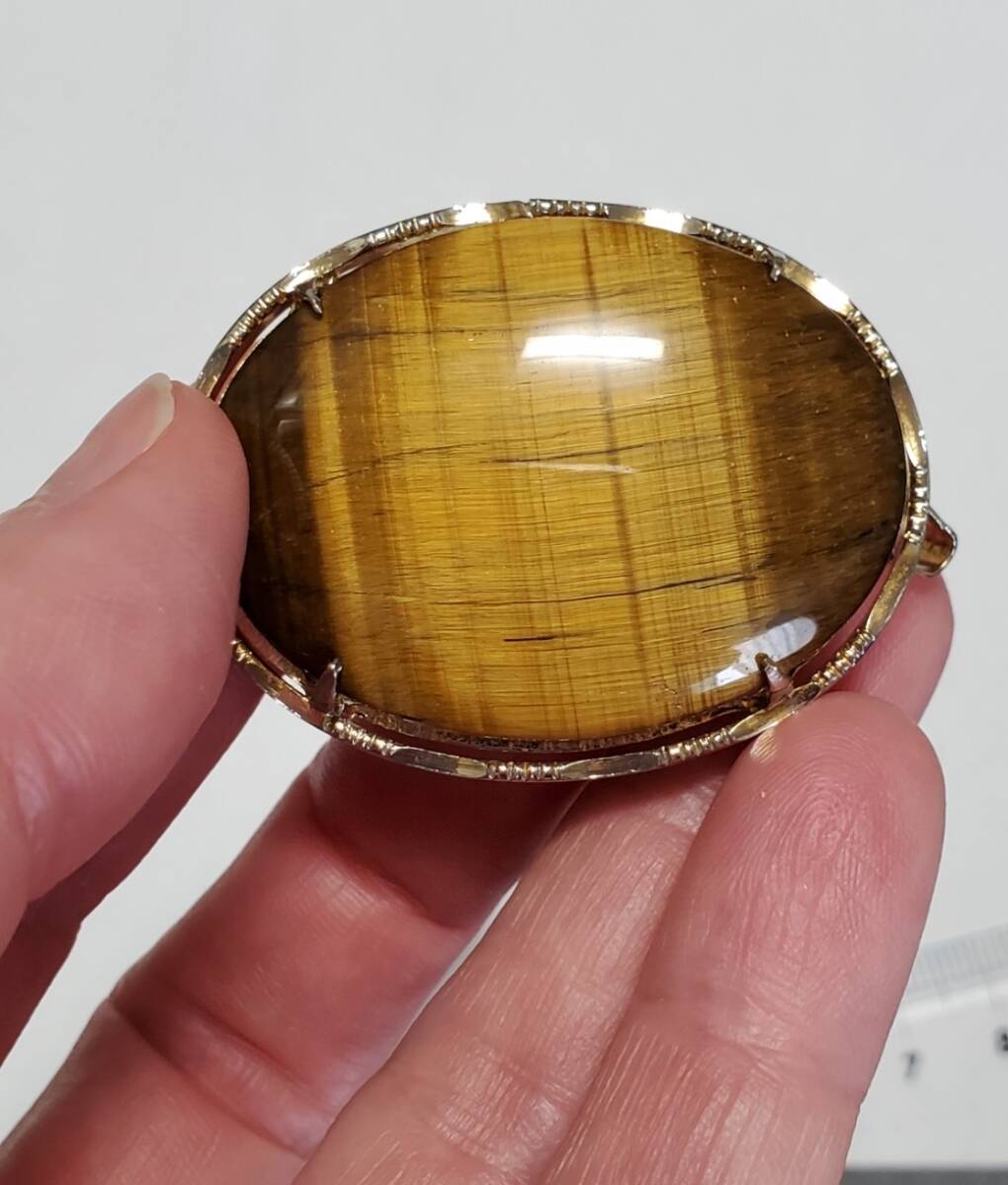 タイガーアイ カラーストーン 帯留め  ブローチ ペンダントトップ 和装小物 レディース  アクセサリー  17,6g