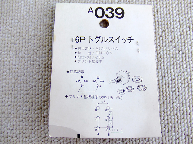 ■ エレキット パーツ 6P トグルスイッチ A039 ■未開封新品