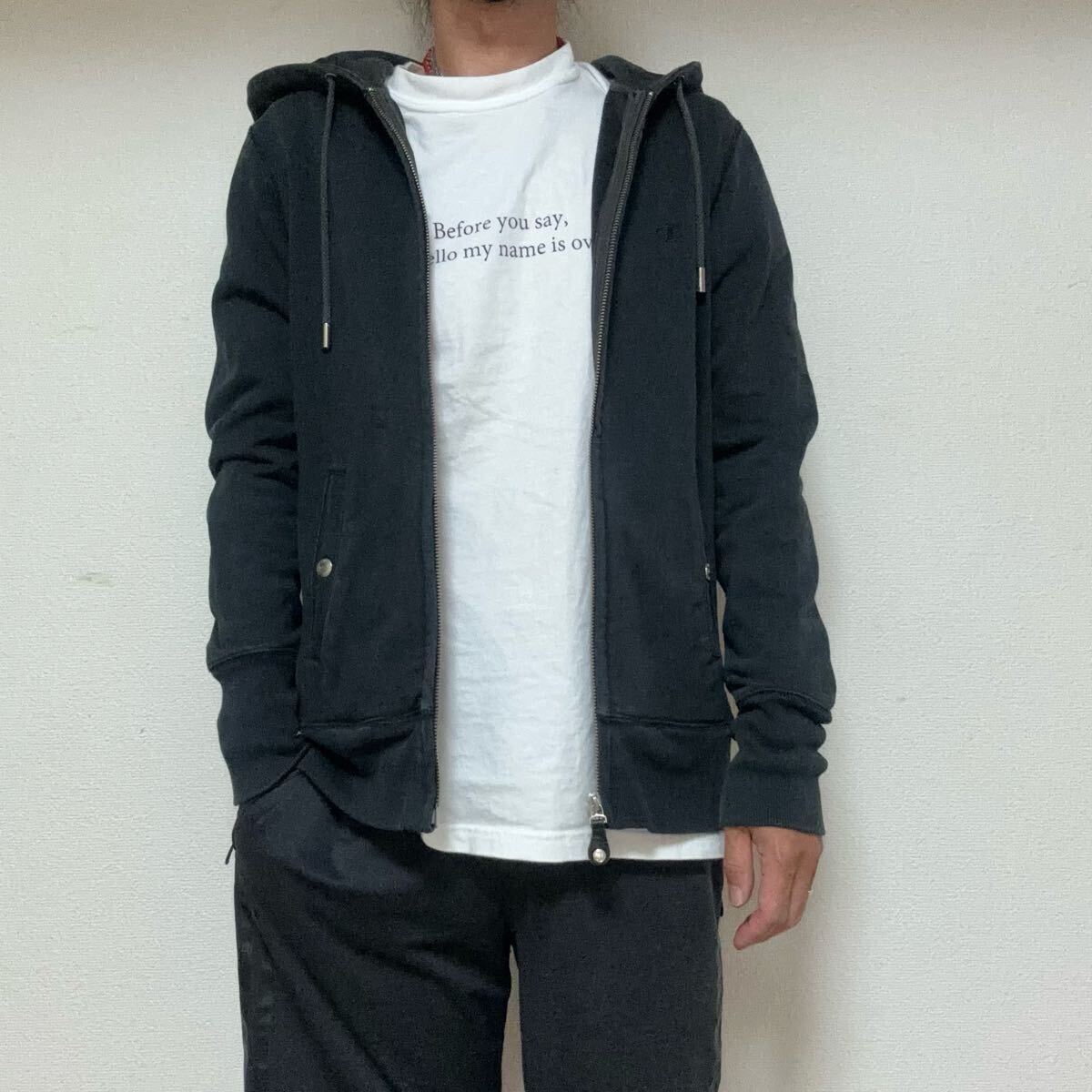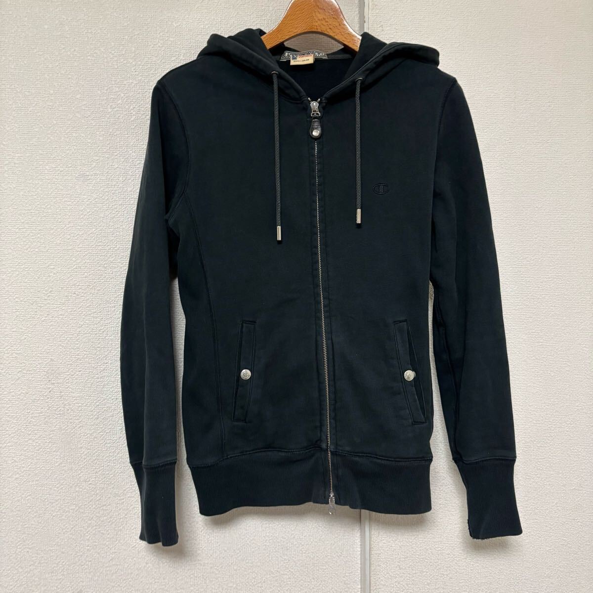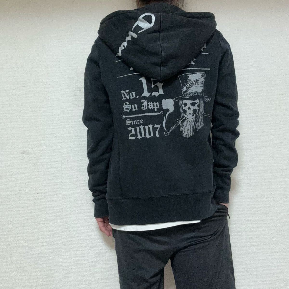 タイトなシルエットにダブルジッパーでY2Kな空気感もありチャンピオンとのコラボでヘビーウエイトのリバースウィーブにブランドらしいプリントを載せた一枚です。
