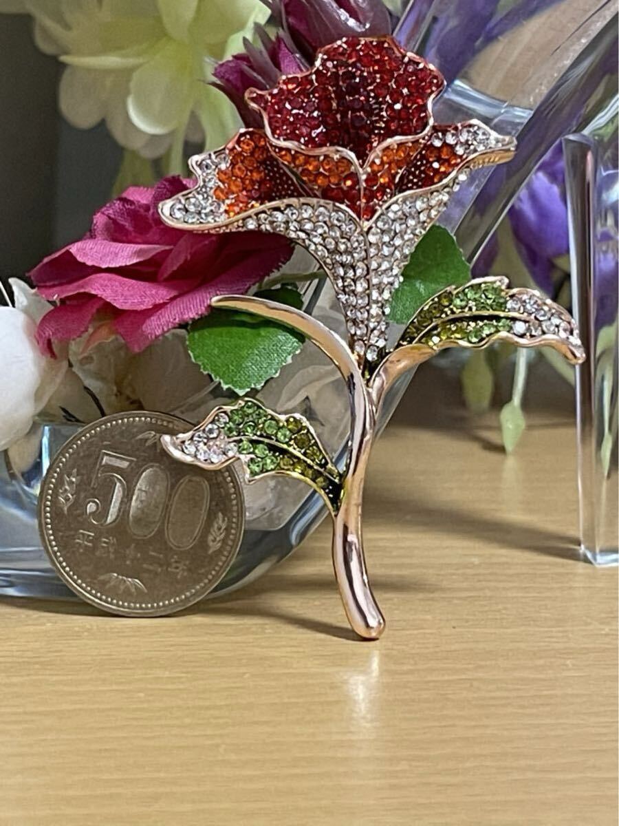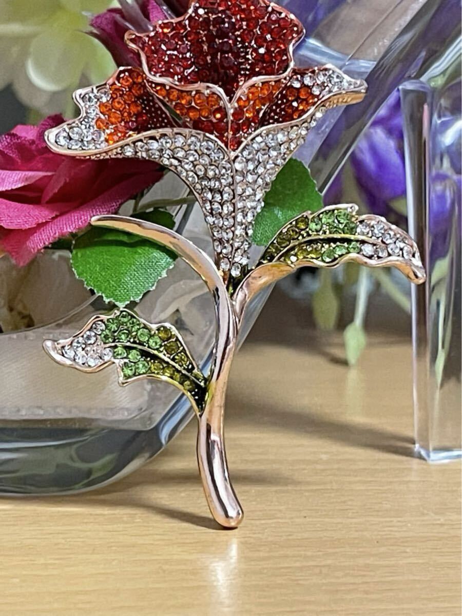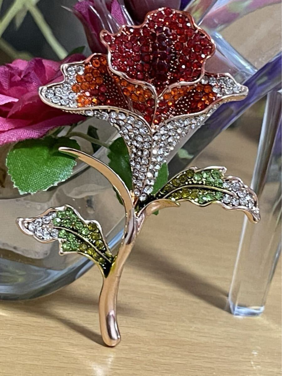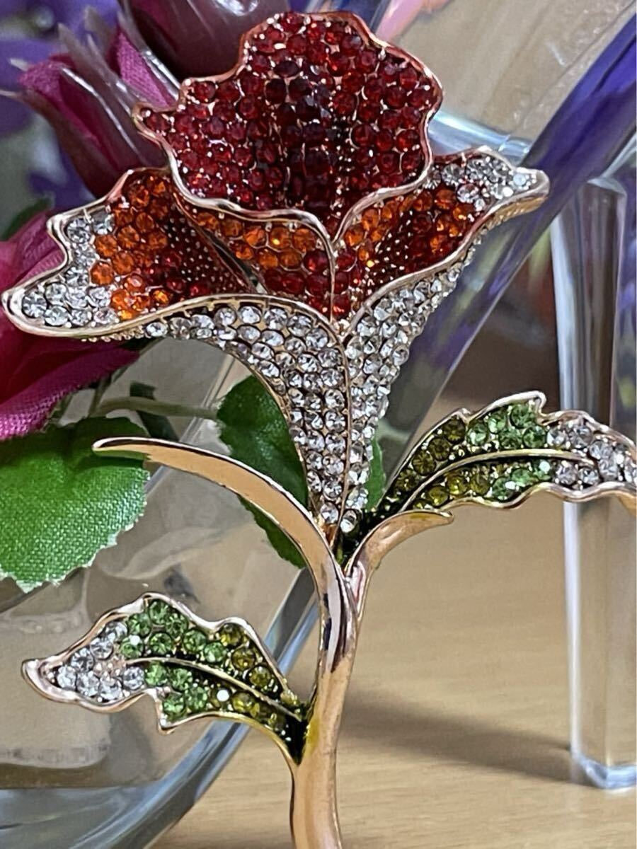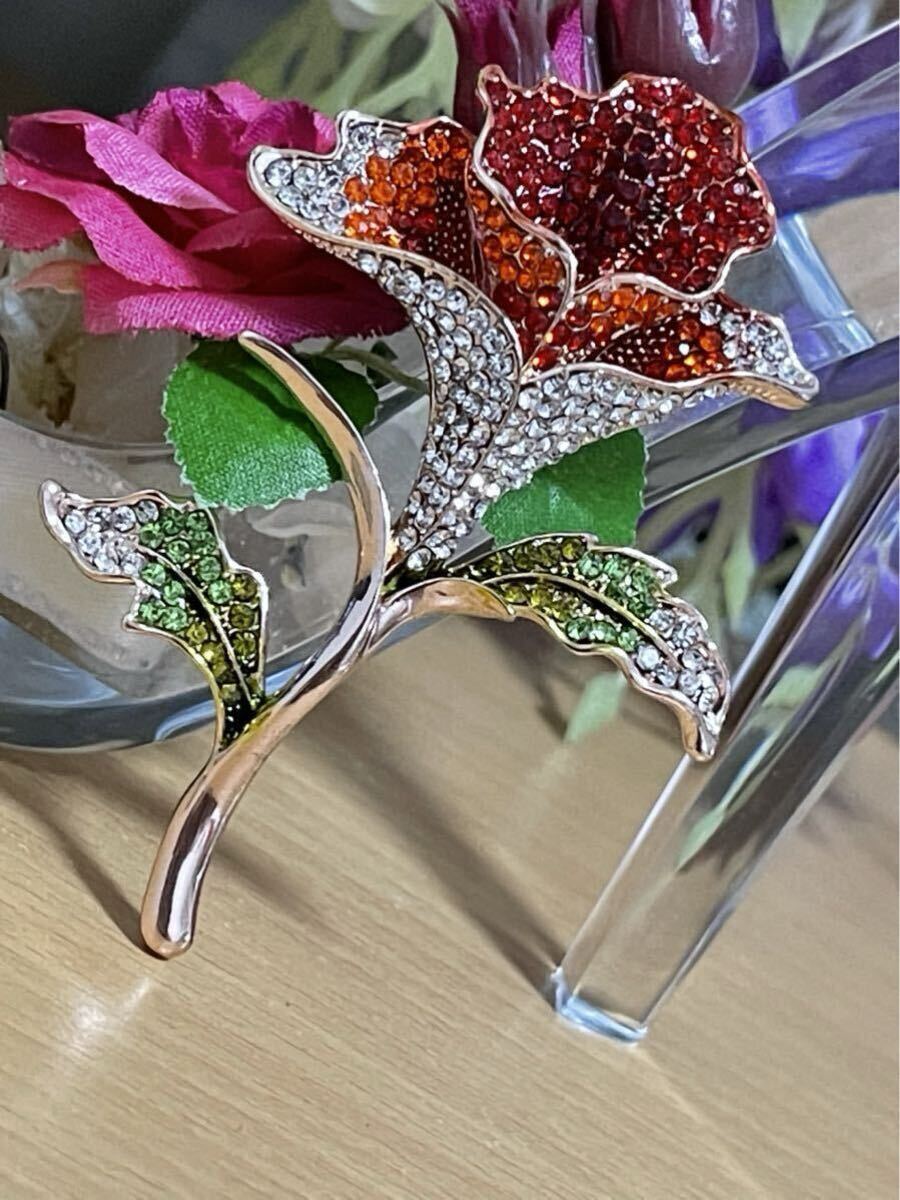 【商品説明】:薔薇モチーフした高級精選ジルコニアを使用してるブローチです。とても上品です。これからの季節に是非ご活用してください^_^
