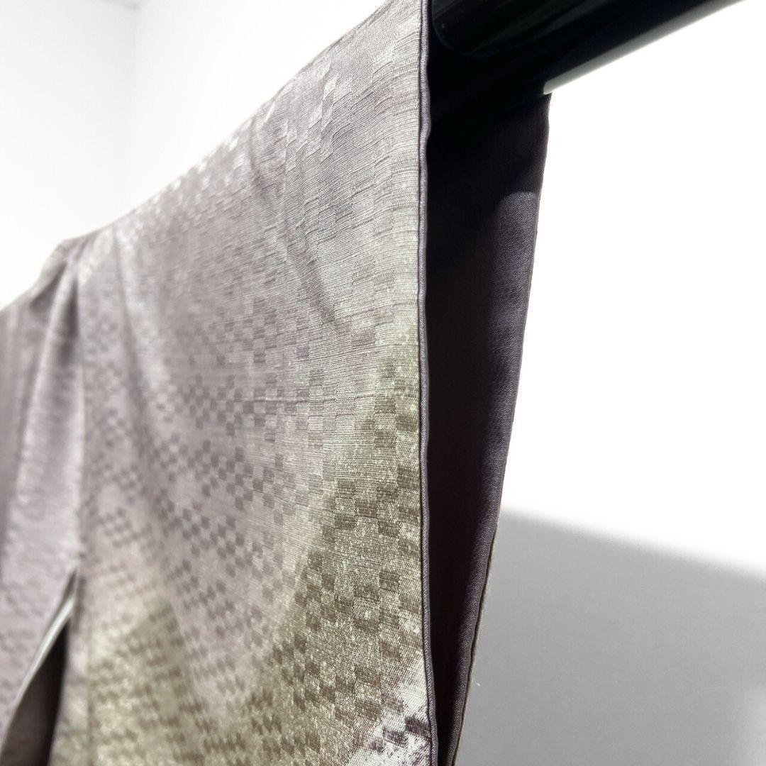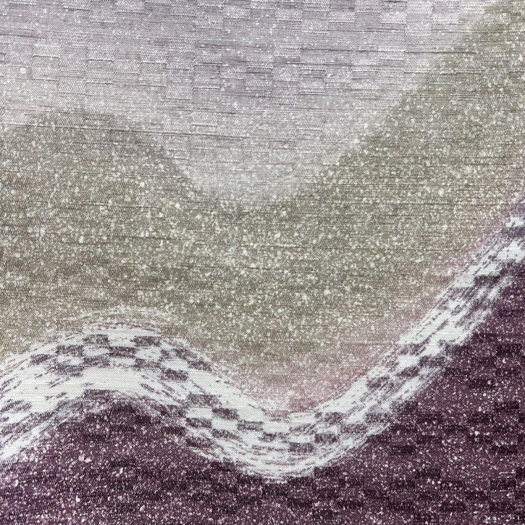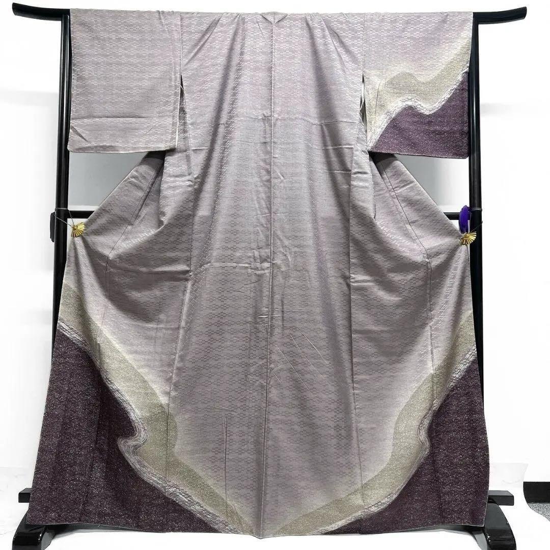 くすみパープルに細やかな織りと白のたたき染めが美しい一着です。