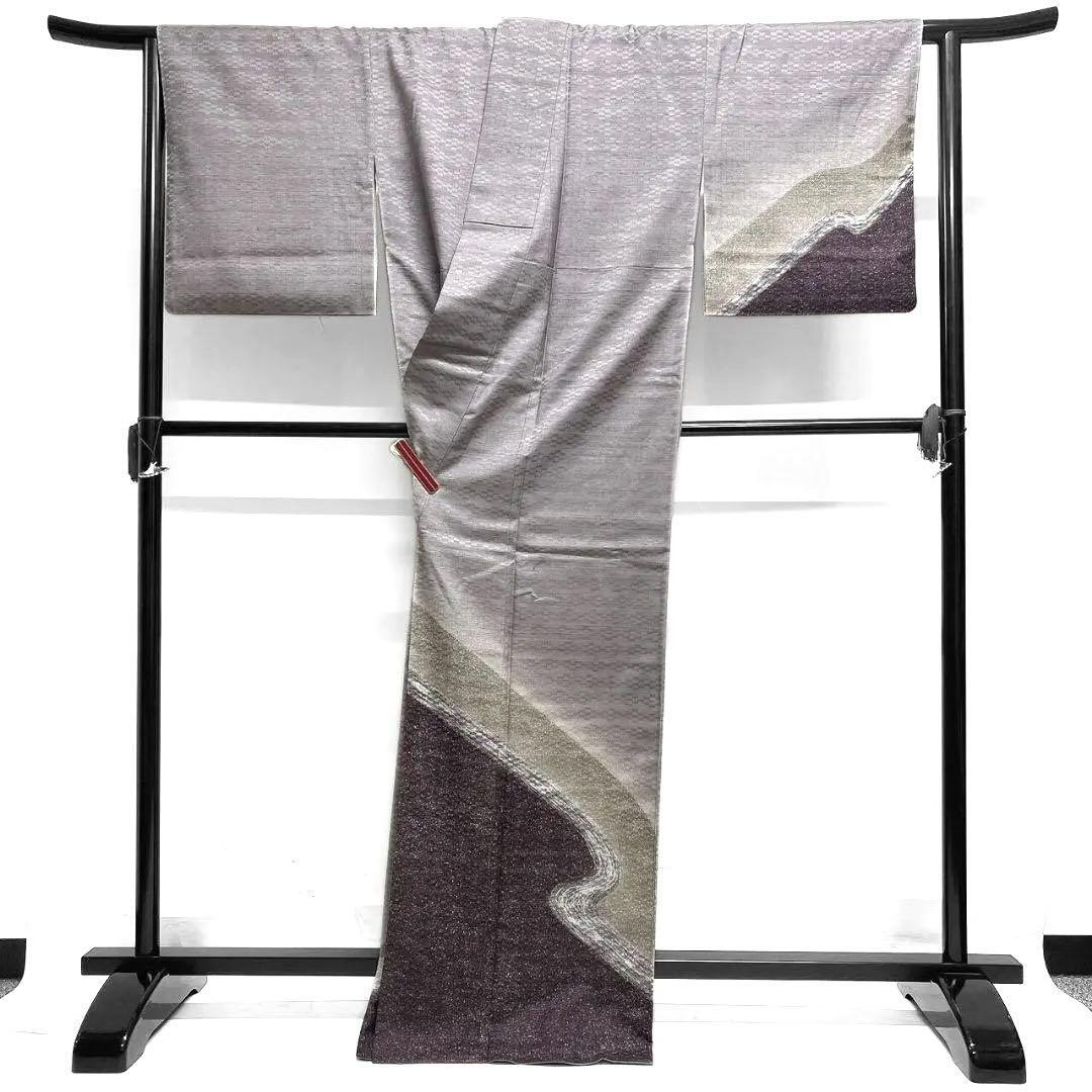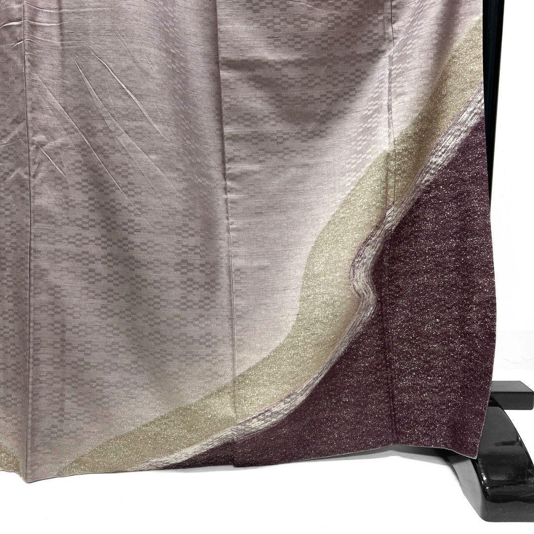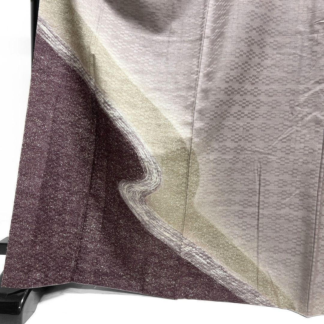 くすみパープルに細やかな織りと白のたたき染めが美しい一着です。