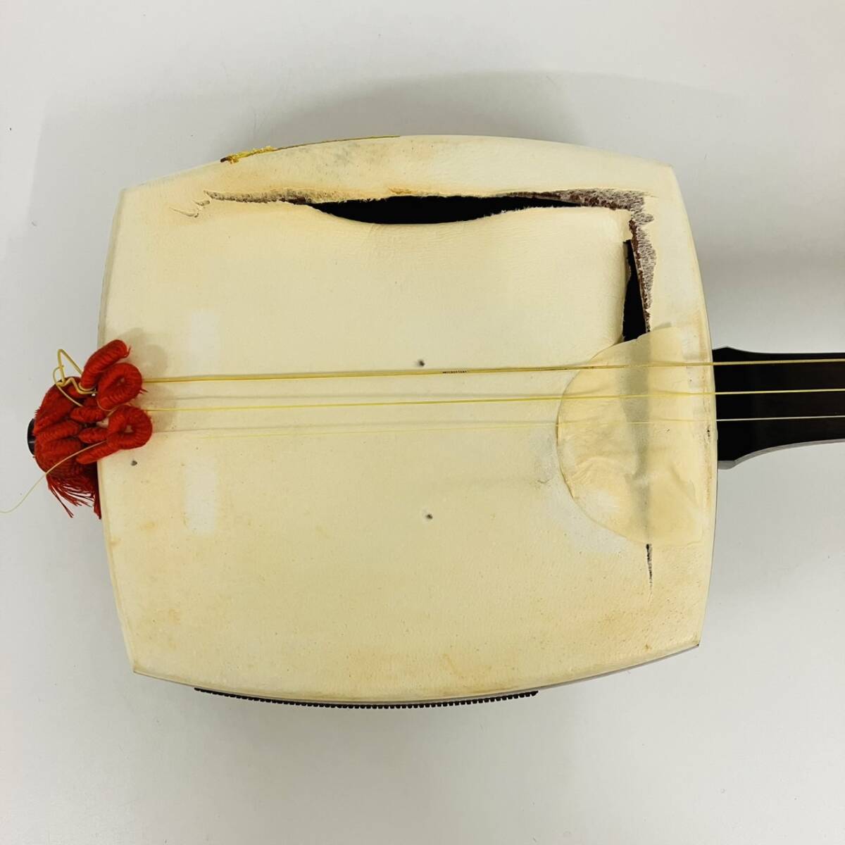 三味線 綾杉胴 胴破れあり 中棹 伝統 和楽器 全長約98.5㎝ ハードケース 鍵付き 【0519-B】