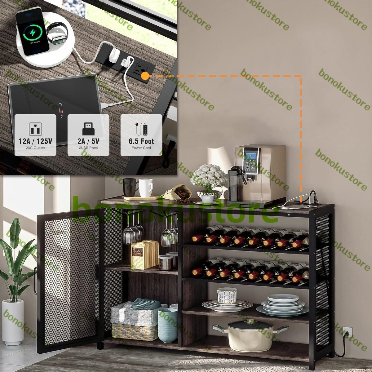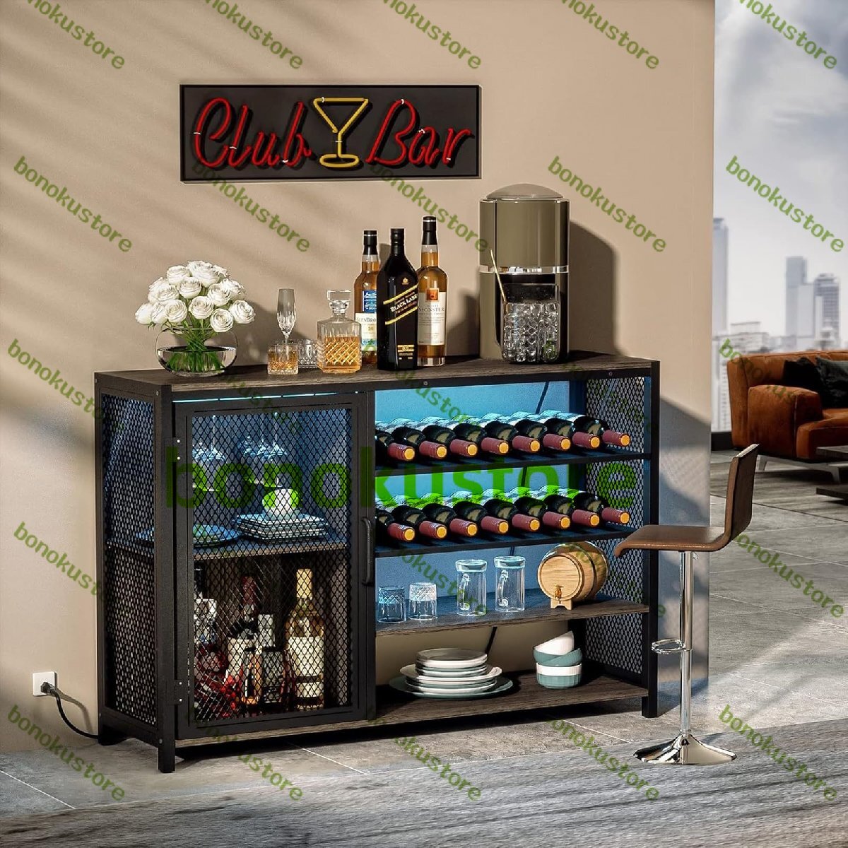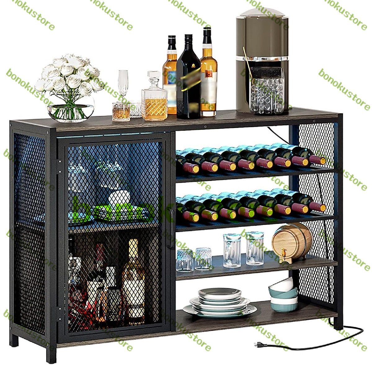 FORRTY ワインラック ワインキャビネット ワインバーラックキャビネット 酒棚 メッシュドア付き工業用ワインキャビネット ワイングラスホルダー、オープンワイン収納コンパートメント、高さ調節可能なテーブル脚、充電ソケット装備、ライトモード、16ボタンメモリー機能、ワイヤレスリモコン付き ダイニングエリア、バーエリア、書斎などに適しています ウイスキー棚 キッチン シェルフ ラック 収納本棚(茶色