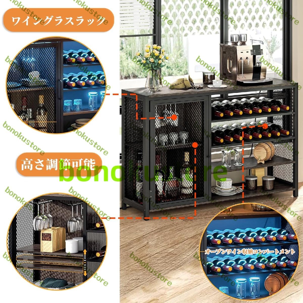 このワインラックは、アイアンと木の組み合わせ採用しており、美しさと実用性を兼ね備えています。大容量の収納を提供し、ワインボトルやコレクションを完璧に展示できます。リビングルーム、キッチン、書斎など、どんな場所にも自然に溶け込み、温かみのある整理された空間を作り出します。細部にわたるデザインが、使うたびに楽しく心地よい瞬間を提供します。製品名: ワインバーラックキャビネット 酒棚 メッシュドア付き工業用ワインキャビネット 材質: アイアンと木の組み合わせ色: グレー , 茶色製品サイズ:120X30X80cmキッチンでの収納キッチンでの調味料や小さなキッチン用品を整理整頓するために最適です。シェルフラックとして、調理器具や瓶を並べて使うことで、キッチンがすっきりとした印象に。狭いスペースにもぴったりの隙間棚として、無駄なく収納できます。書斎でのディスプレイ書斎の一角に置いて、コレクション本棚として活用できます。おしゃれな天然竹コレクションキャビネットとして、ビンテージ書籍や小物を並べて、個性的なインテリアを作り出します。また、シェルフラックとしても機能し、デスク周りの整理整頓に便利です。バルコニーでの装飾屋外のバルコニーでも使用可能なデザインです。植物やおしゃれな雑貨を収納し、ディスプレイラックとして活用することで、バルコニーに華やかさを加えます。使いやすさとスタイリッシュさを兼ね備えた収納アイテムです。ホームバーの必需品家庭用バーコーナーでの収納に最適です。ウイスキー棚として、ウィスキーやその他のボトルを整理し、友人と一緒に素敵なカクテルタイムを楽しむための空間を作り出します。収納キャビネットとして、追加のグラスやバー用品を収納することも可能です。パッケージ内容: ワインラック X1(充電ソケット、アンビエントライト、ワイヤレスリモコンが付属)組み立てが必要です