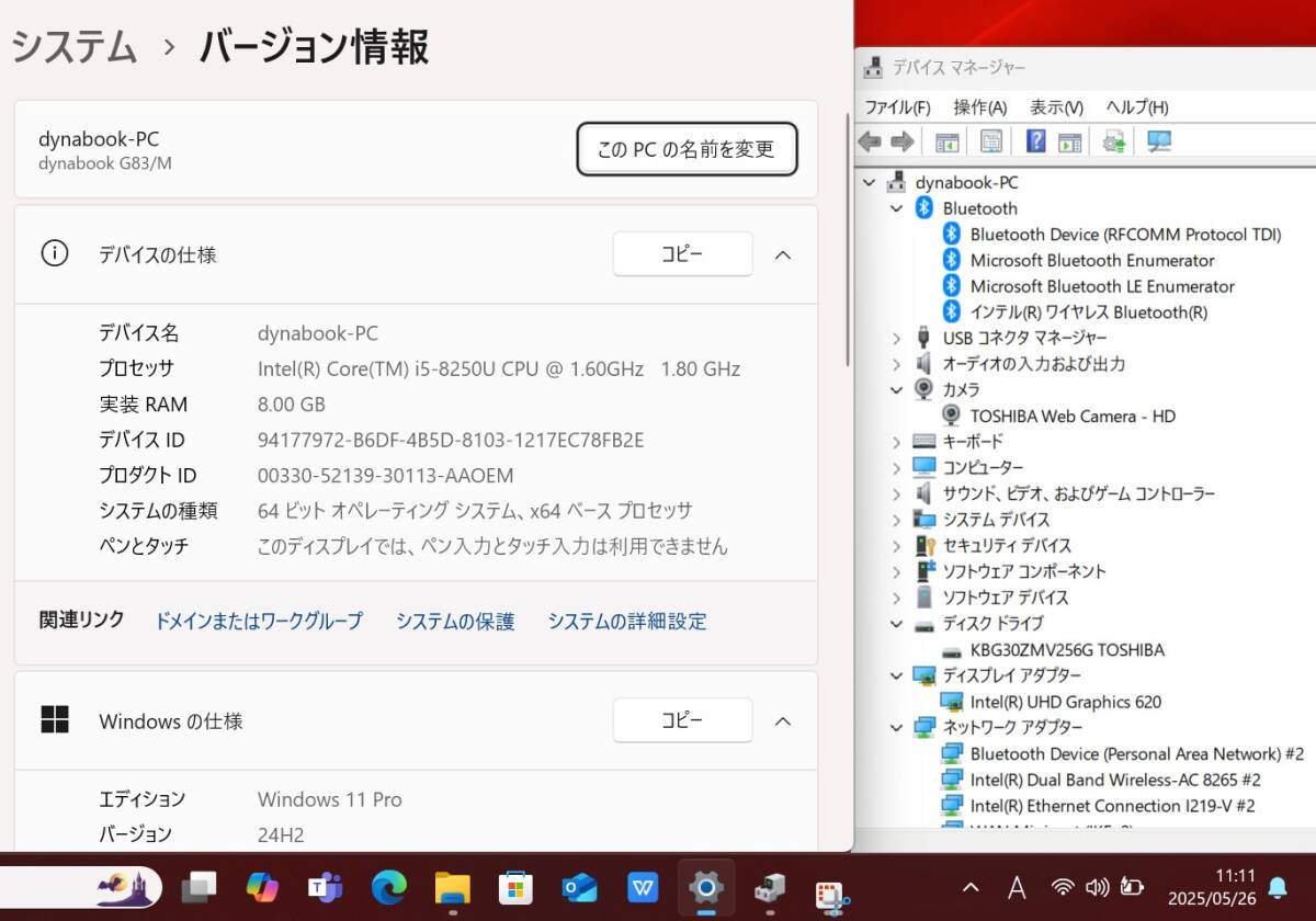 型番: TOSHIBA dynabook G83M |